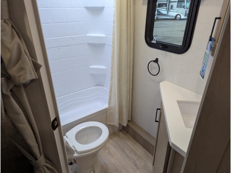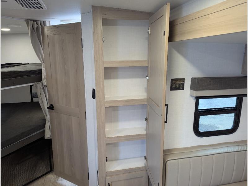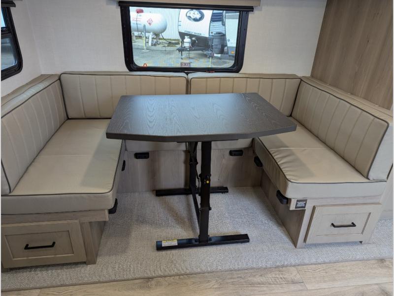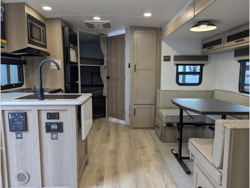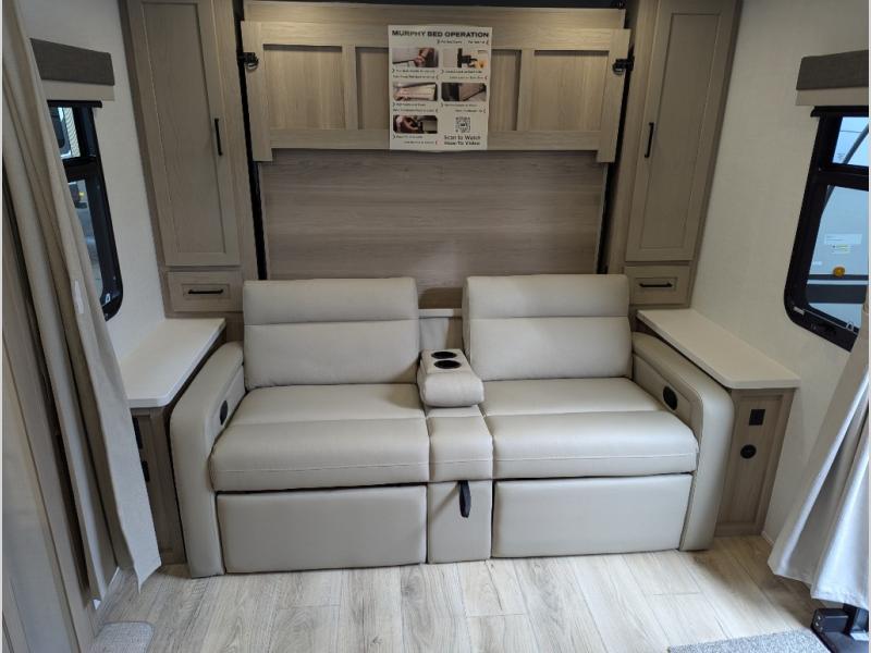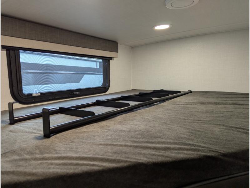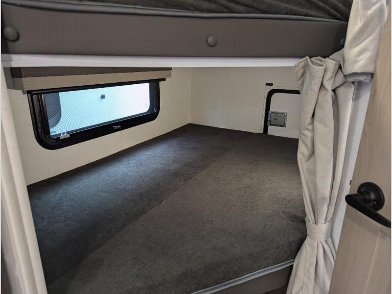 Finally, a lightweight travel trailer with double-size bunks for the kids or your guests! You'll find the versatile Murphy bed up front will be super convenient when you need more space to move around, and the 72" sofa will provide comfy seating space when the bed is put up. This model also includes a U-shaped dinette slide perfect to dine around, play games, and sleep additional guests. A 32" TV in the main living area will allow you to watch your favorite shows in the evenings, or you may just find yourselves outdoors under the 18' power awning with LED lights. And check out the pass-through storage, plus additional exterior storage for your hiking gear!