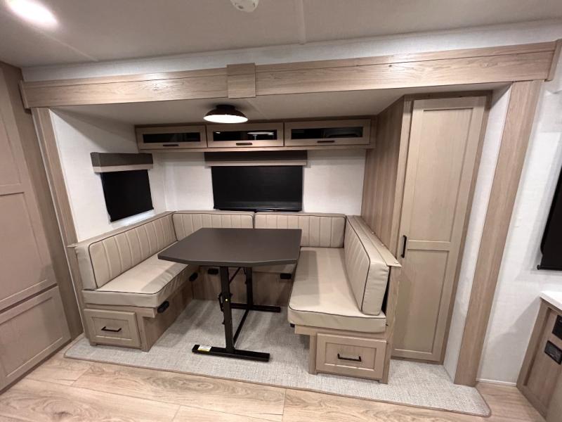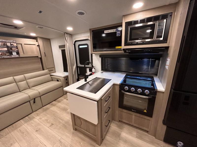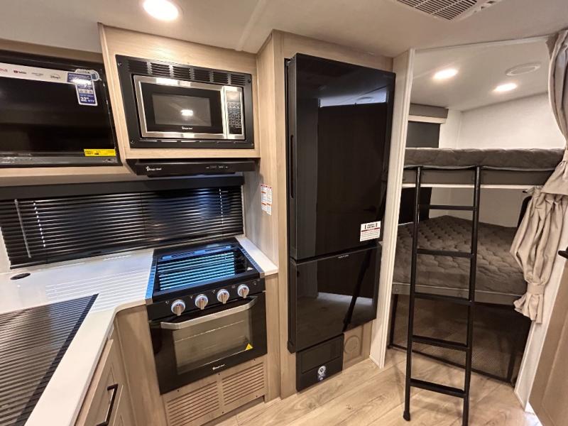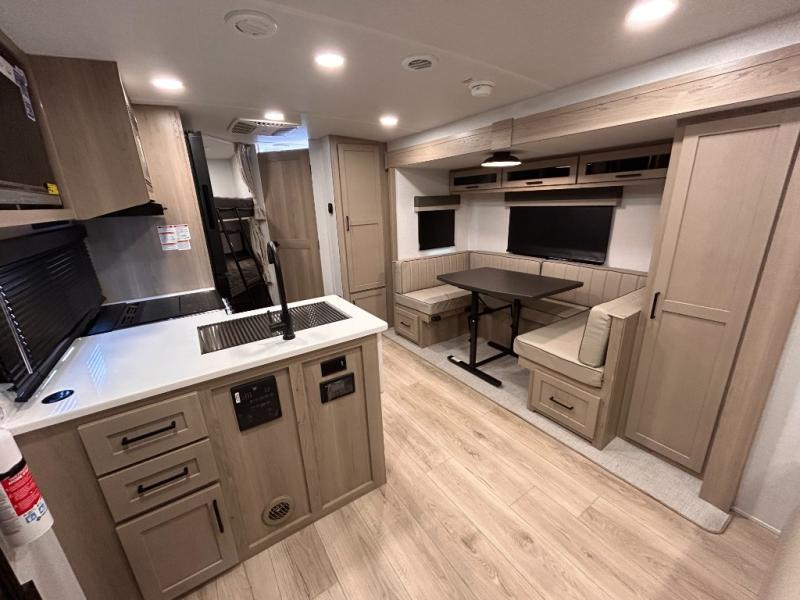 What I liked most: After a lot of searching, we finally found a trailer that "checked all of the boxes". Bunk house, lots of kitchen space (including outside!), a bathroom that larger than a coffin, and a huge awning. The bed is very comfortable...we've even used the heated mattress on a cold Wisconsin morning. All of this, and still under 5500 lbs. When you're inside you can't imagine that it's an easy to tow less than 26 feet long!