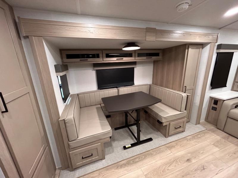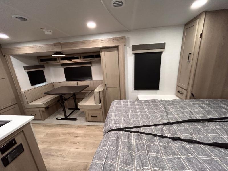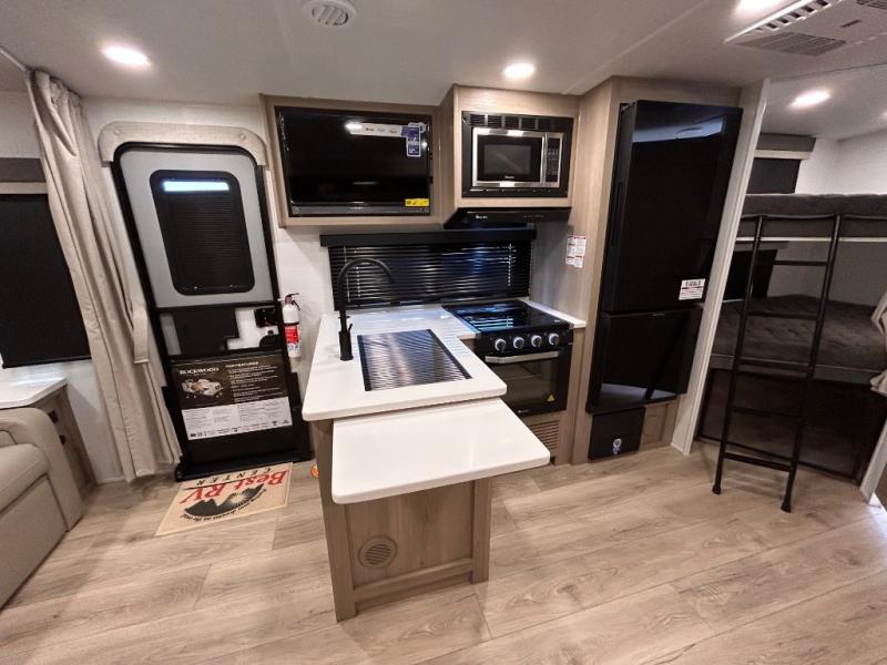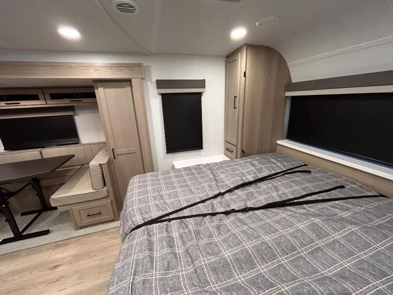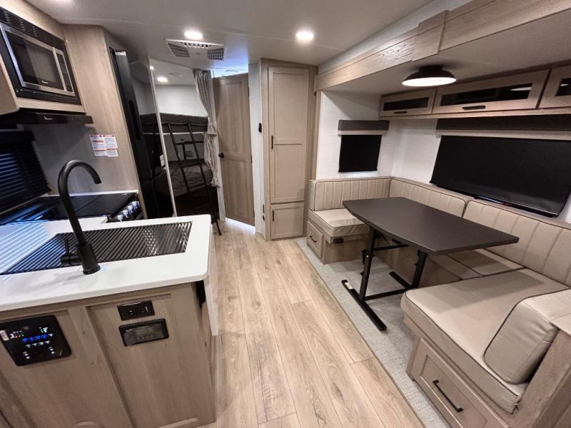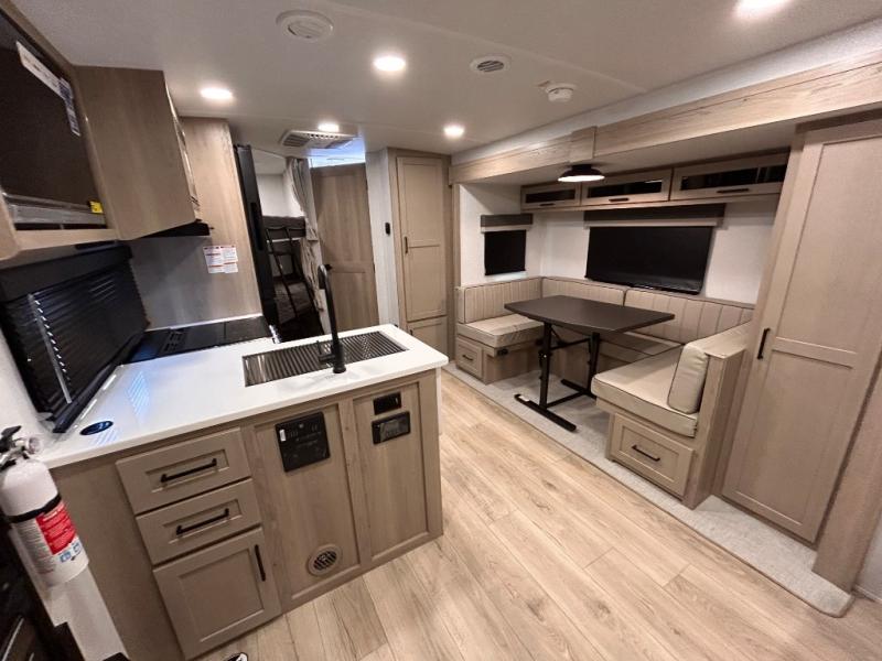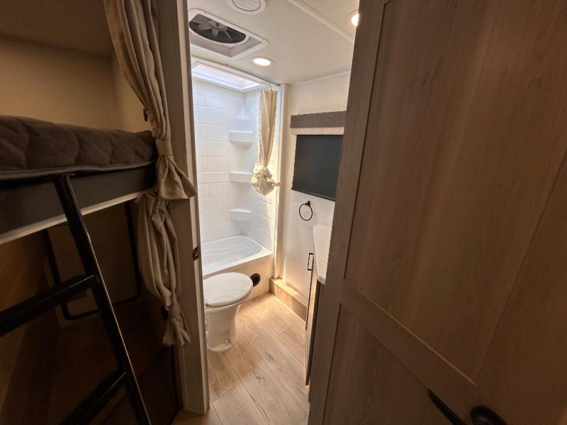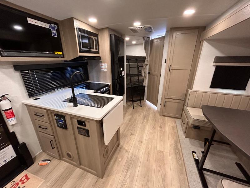 What I liked most: After a lot of searching, we finally found a trailer that "checked all of the boxes". Bunk house, lots of kitchen space (including outside!), a bathroom that larger than a coffin, and a huge awning. The bed is very comfortable...we've even used the heated mattress on a cold Wisconsin morning. All of this, and still under 5500 lbs. When you're inside you can't imagine that it's an easy to tow less than 26 feet long!