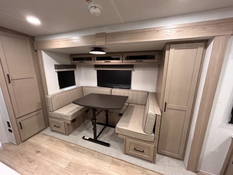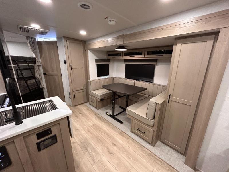 What I liked most: After a lot of searching, we finally found a trailer that "checked all of the boxes". Bunk house, lots of kitchen space (including outside!), a bathroom that larger than a coffin, and a huge awning. The bed is very comfortable...we've even used the heated mattress on a cold Wisconsin morning. All of this, and still under 5500 lbs. When you're inside you can't imagine that it's an easy to tow less than 26 feet long!