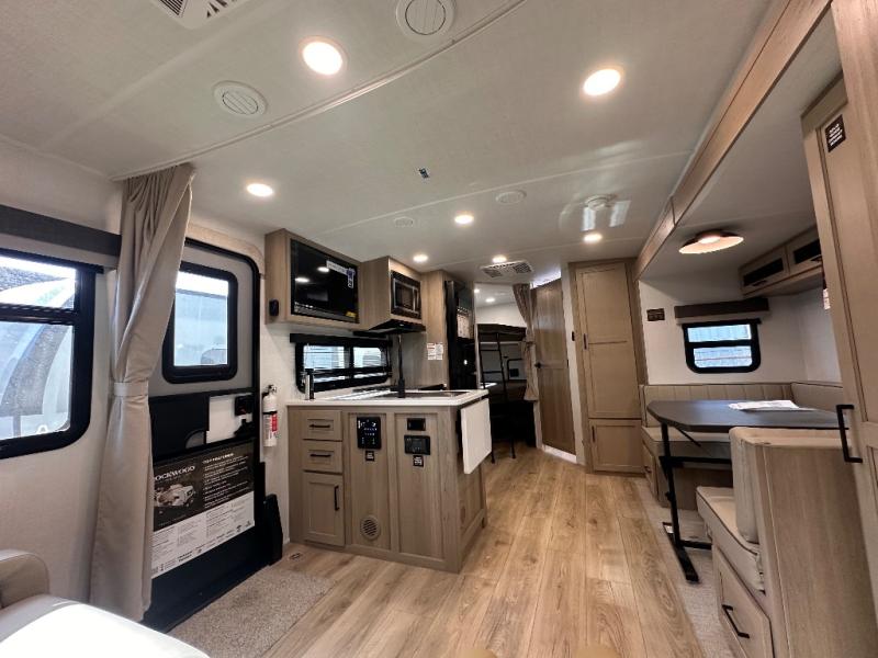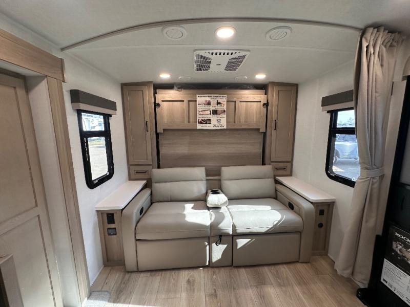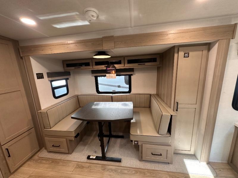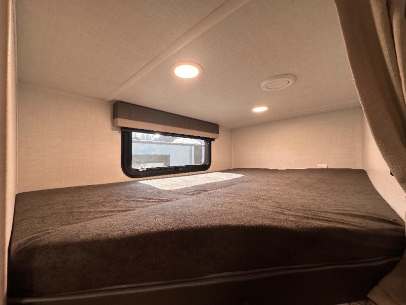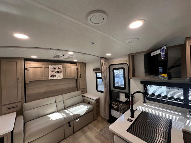 Finally, a lightweight travel trailer with double-size bunks for the kids or your guests! You'll find the versatile Murphy bed up front will be super convenient when you need more space to move around, and the 72" sofa will provide comfy seating space when the bed is put up. This model also includes a U-shaped dinette slide perfect to dine around, play games, and sleep additional guests. A TV in the main living area will allow you to watch your favorite shows in the evenings, or you may just find yourselves outdoors under the 18' power awning with LED lights. And check out the pass-through storage, plus additional exterior storage for your hiking gear!