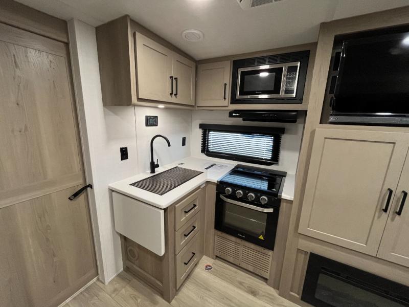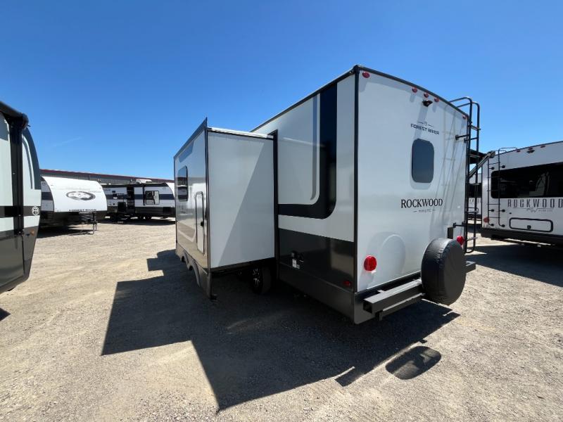Each Rockwood Mini Lite travel trailer by Forest River is constructed with a fully laminated one-piece walkable roof, sleek frameless windows, and a six-sided full aluminum frame for strength and durability. The 12V thermostatically controlled heated tanks, plus radiant foil in the underbelly and slide out floors will allow you to camp well into the colder months, and the 200W roof solar panel will be perfect for a little off-gridding. Each model includes solid surface kitchen countertops, solid wood cabinet doors, night roller shades, plus many more interior features. Having an AIR 360+ omnidirectional antenna with WiFi prep on board gives you the option to get some work done if it's needed, and the power tongue jack provides hassle-free set up, so you can enjoy more time relaxing!