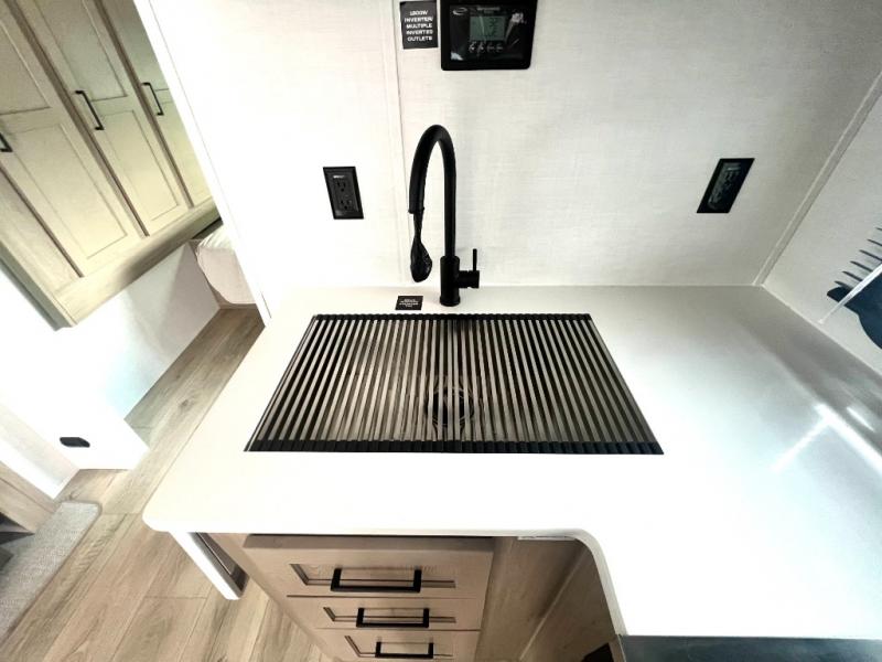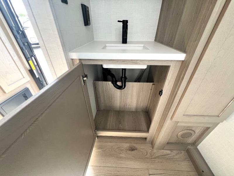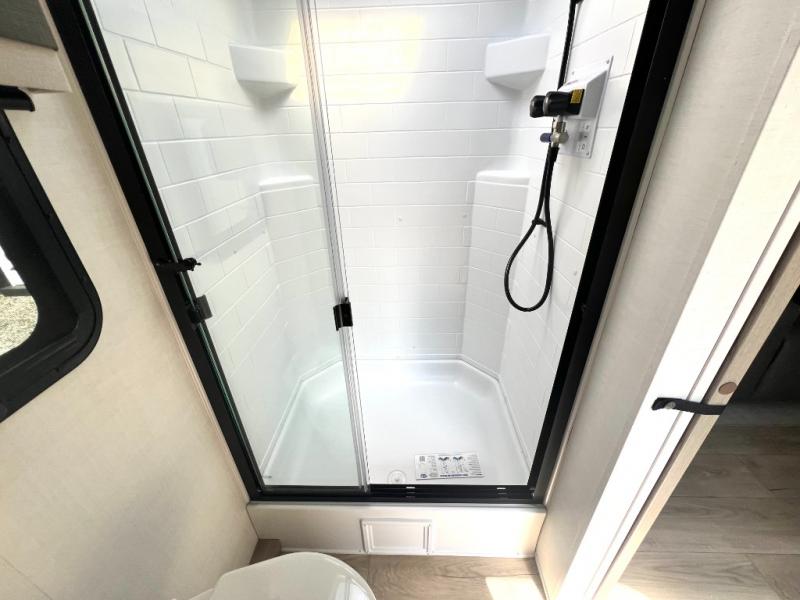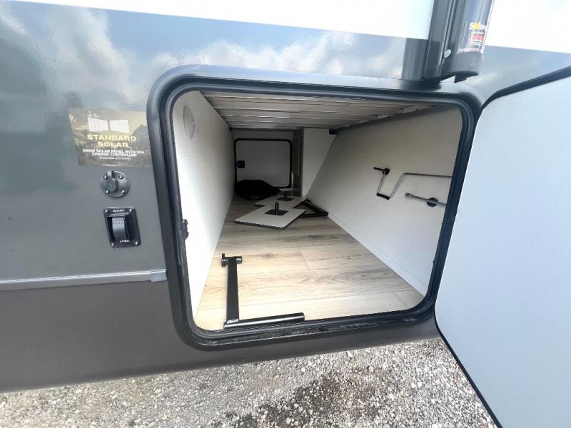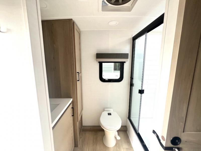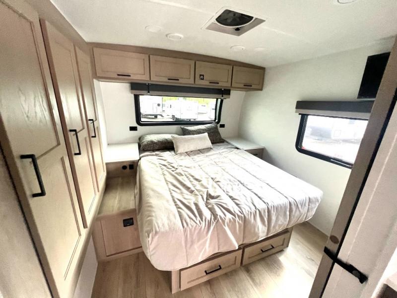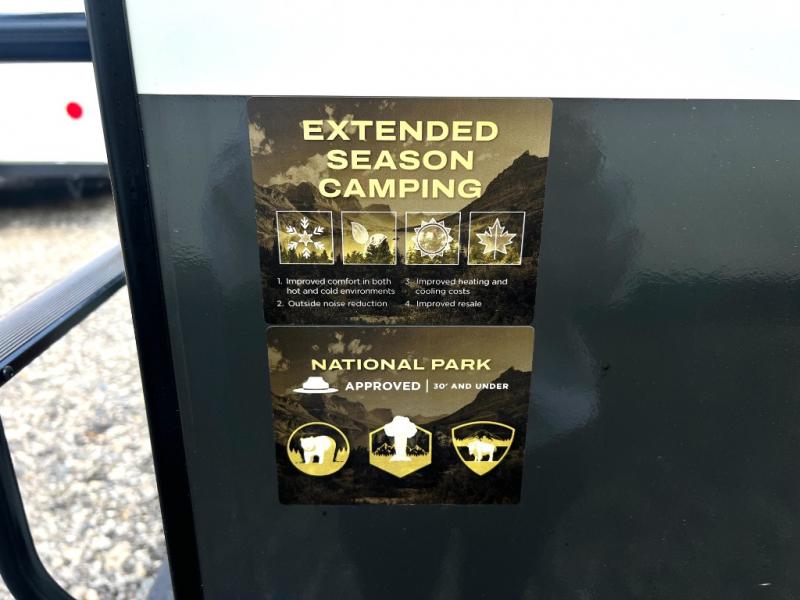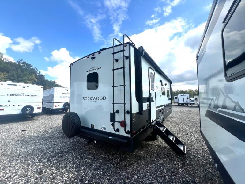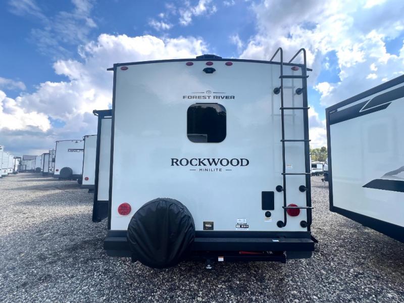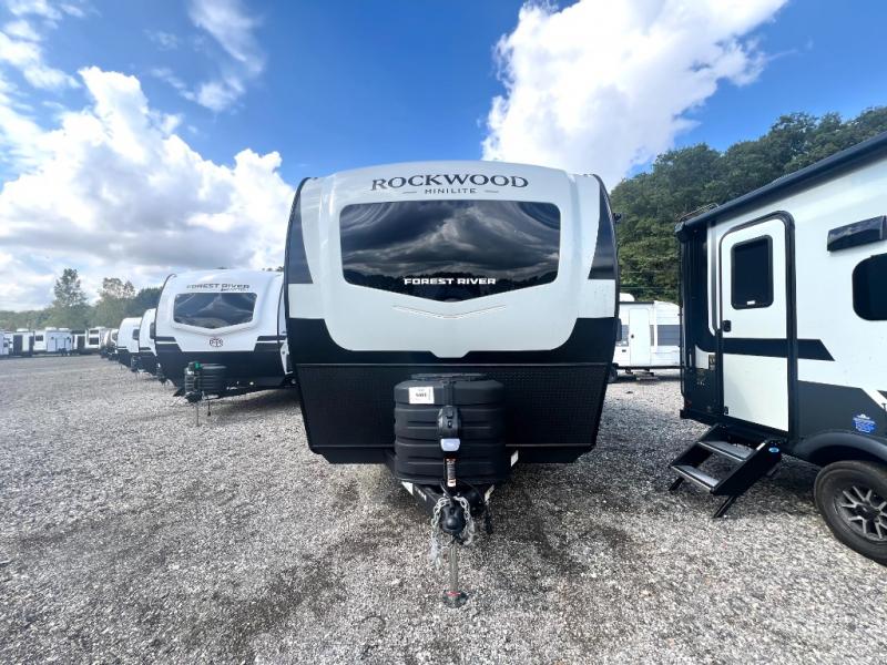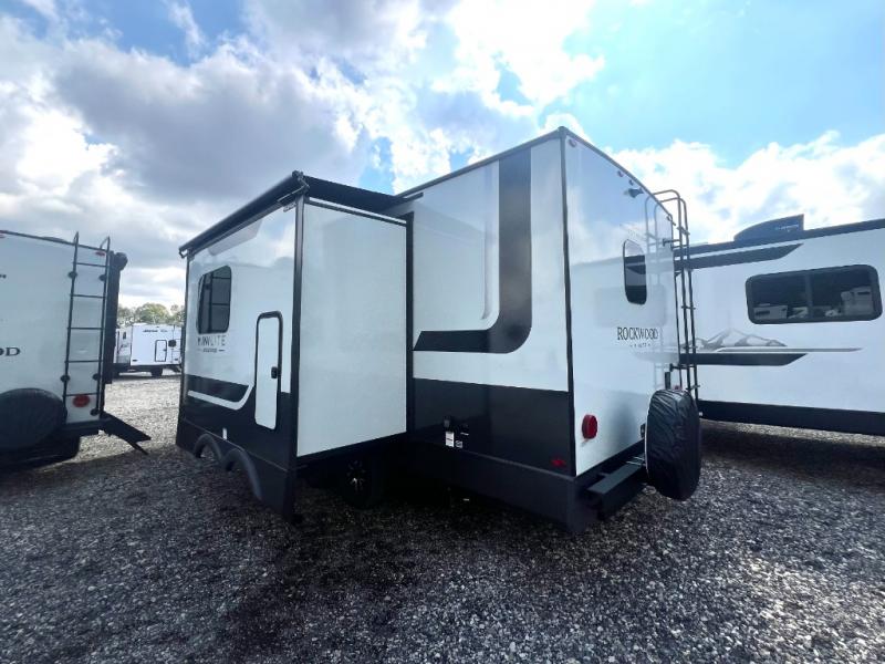 Each Rockwood Mini Lite travel trailer by Forest River is constructed with a fully laminated one-piece walkable roof, sleek frameless windows, and a six-sided full aluminum frame for strength and durability. The 12V thermostatically controlled heated tanks, plus radiant foil in the underbelly will allow you to camp well into the colder months, and the 200W roof solar panel will be perfect for a little off-gridding. Each model includes solid surface kitchen countertops, hidden hinge cabinet doors, roller shades, plus many more interior features. Having an AIR 360+ omnidirectional antenna with WiFi prep on board gives you the option to get some work done if it's needed, and the power tongue jack provides hassle-free set up, so you can enjoy more time relaxing!