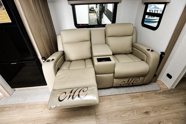Camping trips to the lake just got sweeter with this dual slide out travel trailer in tow! Once you arrive, unload your gear from the exterior drop-frame pass-through storage, then start lunch on the exterior griddle. If you need a rest after traveling all day, the RV queen bed in the front bedroom is sure to give you comfort, or you can relax on the theater seating. The fireplace and entertainment center with a 32" TV will make this space feel just like home, and check out the spacious full rear bath for added privacy. This model also includes an entryway closet/pantry for jackets, shoes, and food!