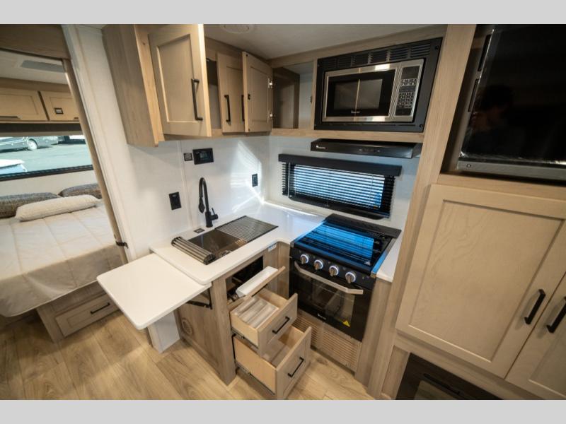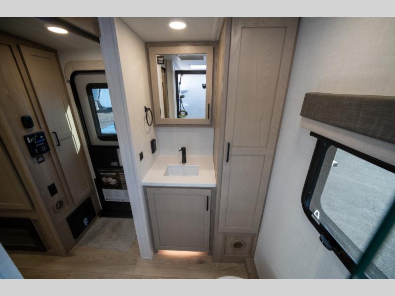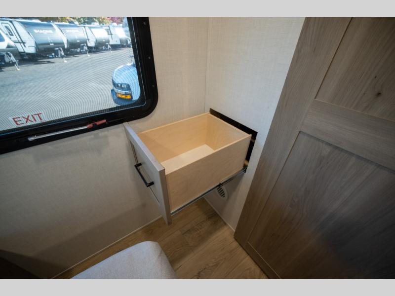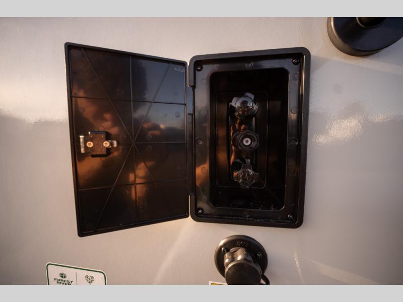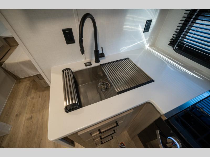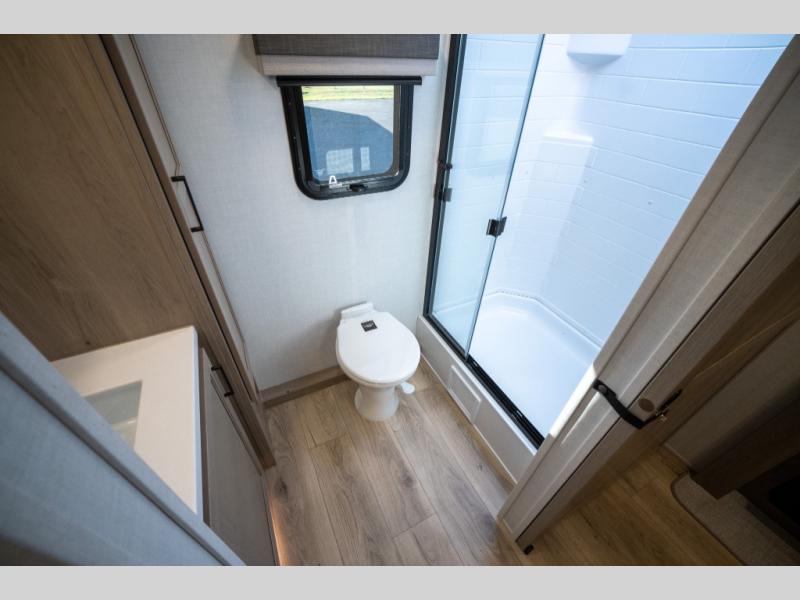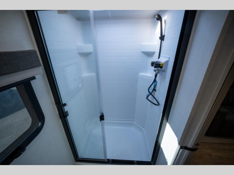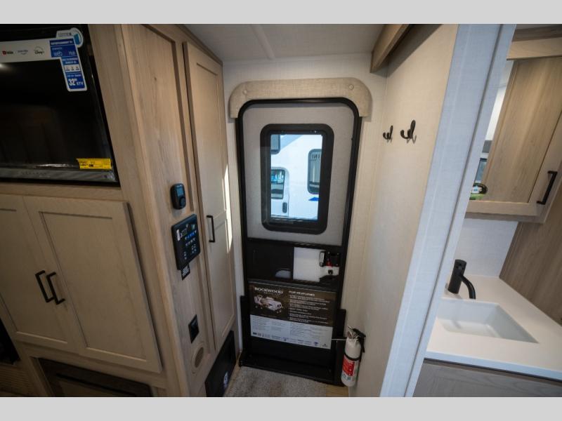 Each Rockwood Mini Lite travel trailer by Forest River is constructed with a fully laminated one-piece walkable roof, sleek frameless windows, and a six-sided full aluminum frame for strength and durability. The 12V thermostatically controlled heated tanks, plus radiant foil in the underbelly will allow you to camp well into the colder months, and the 200W roof solar panel will be perfect for a little off-gridding. Each model includes solid surface kitchen countertops, hidden hinge cabinet doors, roller shades, plus many more interior features. Having an AIR 360+ omnidirectional antenna with WiFi prep on board gives you the option to get some work done if it's needed, and the power tongue jack provides hassle-free set up, so you can enjoy more time relaxing!