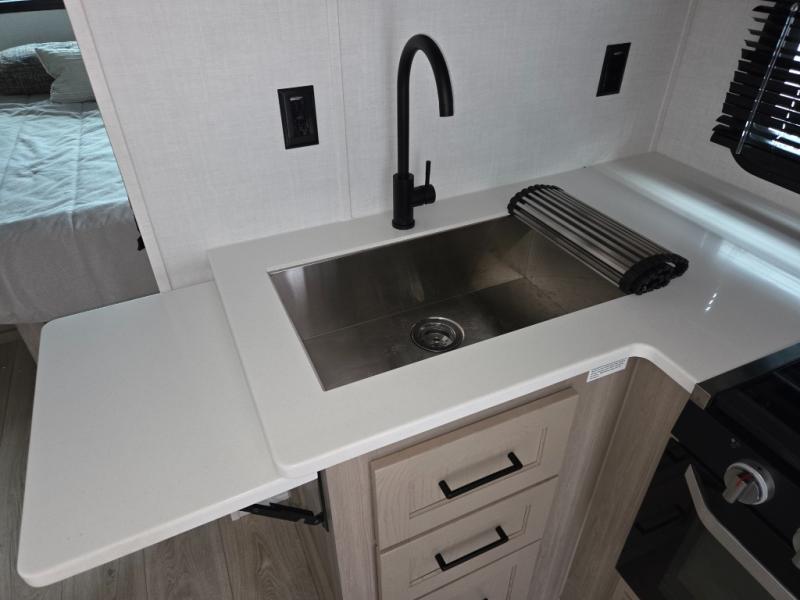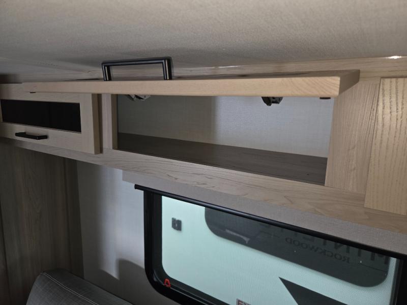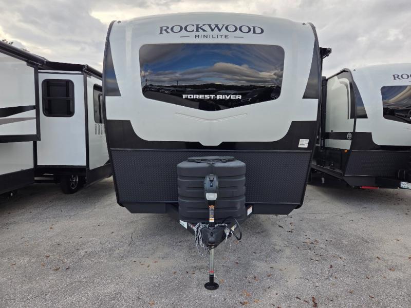 Each Rockwood Mini Lite travel trailer by Forest River is constructed with a fully laminated one-piece walkable roof, sleek frameless windows, and a six-sided full aluminum frame for strength and durability. The 12V thermostatically controlled heated tanks, plus radiant foil in the underbelly will allow you to camp well into the colder months, and the 200W roof solar panel will be perfect for a little off-gridding. Each model includes solid surface kitchen countertops, hidden hinge cabinet doors, roller shades, plus many more interior features. Having an AIR 360+ omnidirectional antenna with WiFi prep on board gives you the option to get some work done if it's needed, and the power tongue jack provides hassle-free set up, so you can enjoy more time relaxing!