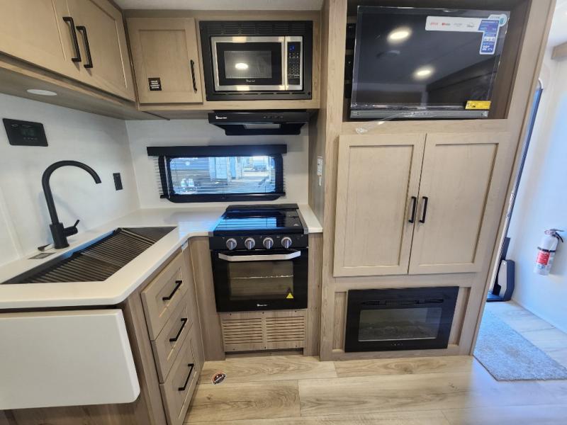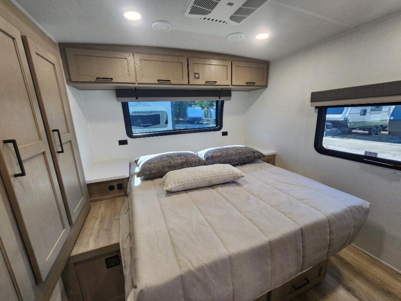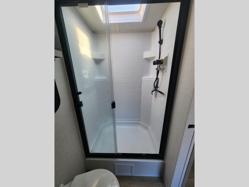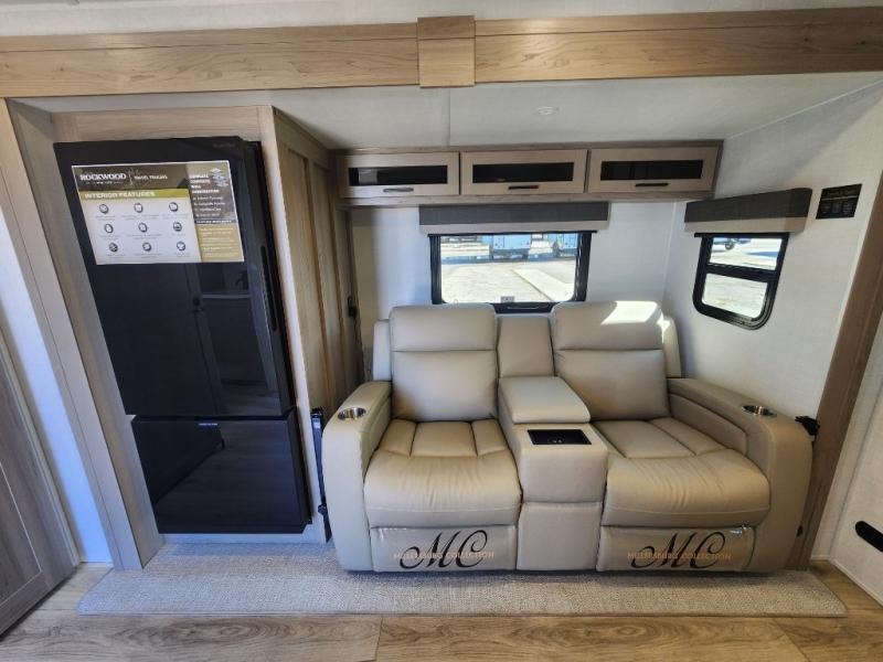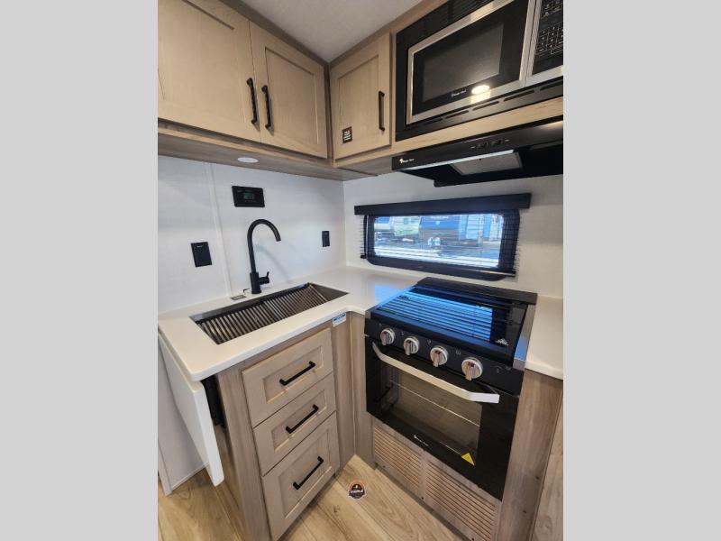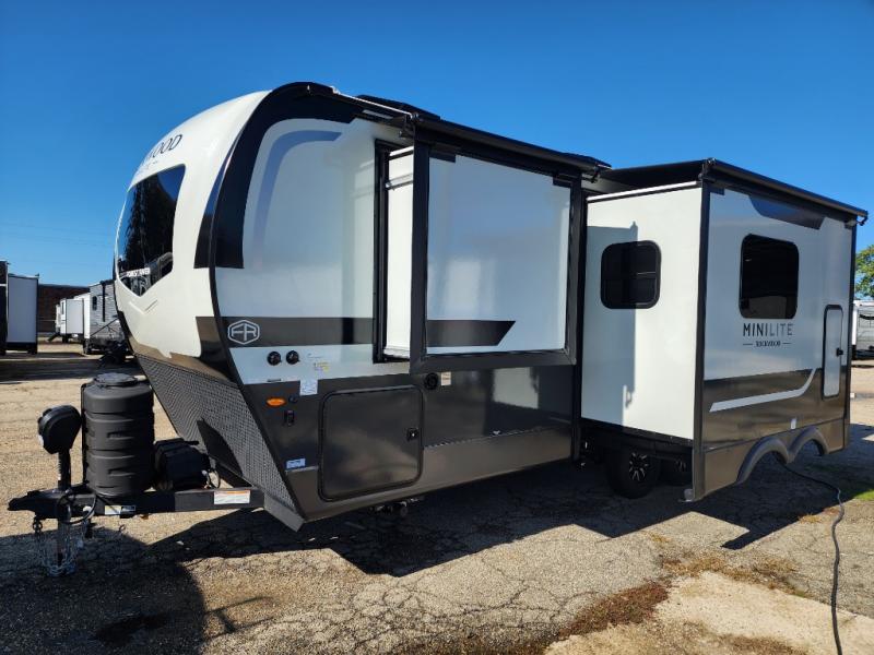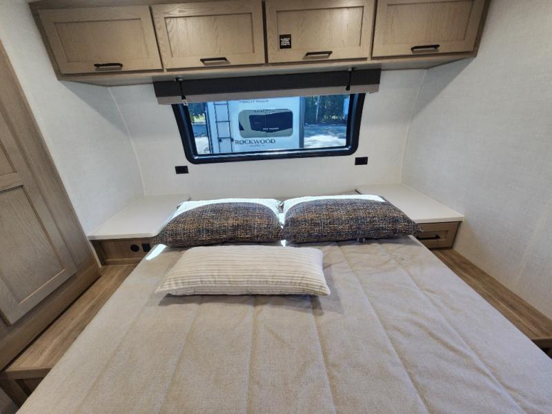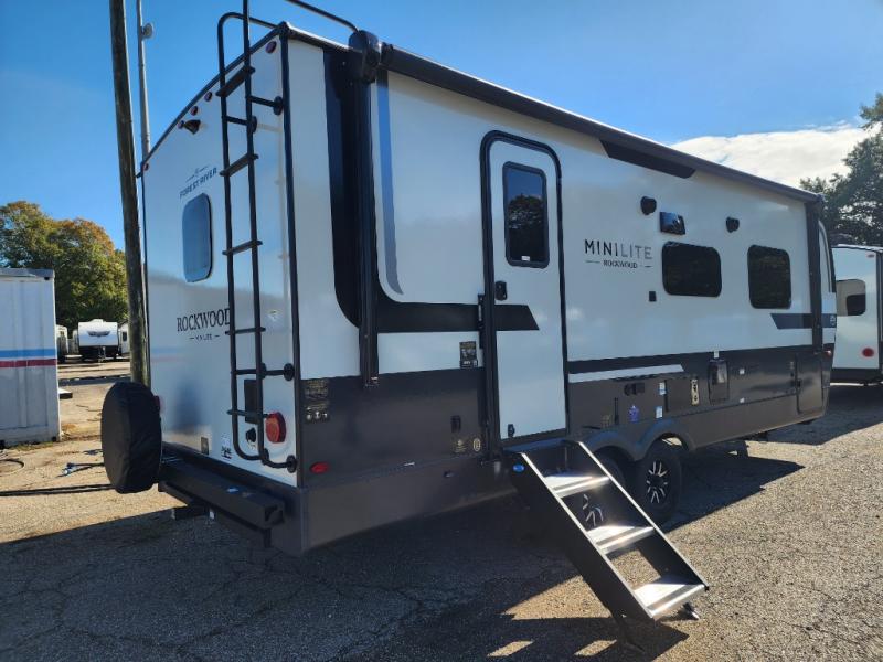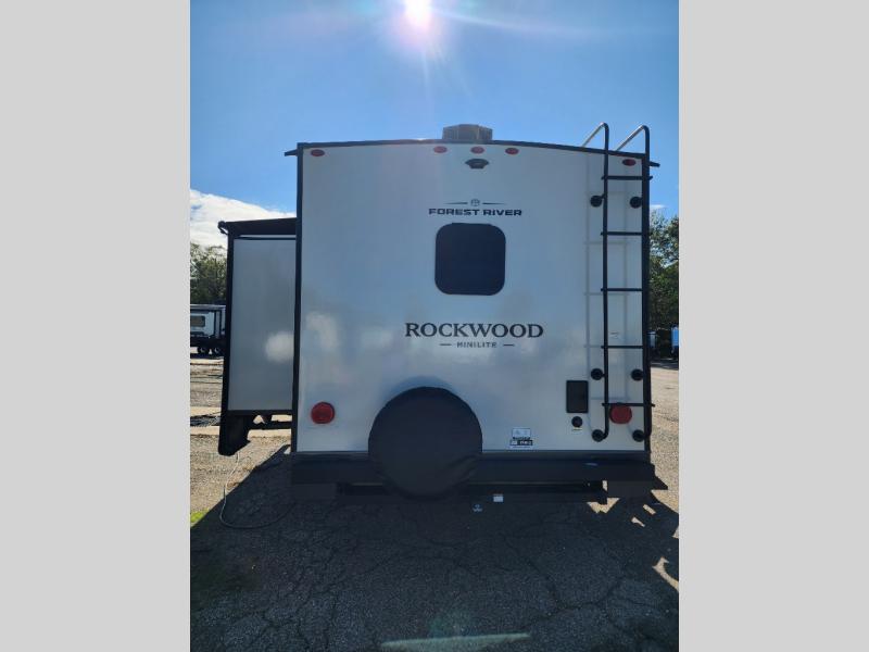 Each Rockwood Mini Lite travel trailer by Forest River is constructed with a fully laminated one-piece walkable roof, sleek frameless windows, and a six-sided full aluminum frame for strength and durability. The 12V thermostatically controlled heated tanks, plus radiant foil in the underbelly will allow you to camp well into the colder months, and the 200W roof solar panel will be perfect for a little off-gridding. Each model includes solid surface kitchen countertops, hidden hinge cabinet doors, roller shades, plus many more interior features. Having an AIR 360+ omnidirectional antenna with WiFi prep on board gives you the option to get some work done if it's needed, and the power tongue jack provides hassle-free set up, so you can enjoy more time relaxing!