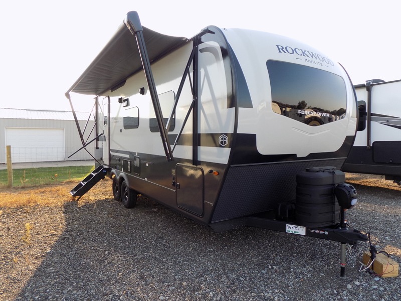 Each Rockwood Mini Lite travel trailer by Forest River is constructed with a fully laminated one-piece walkable roof, sleek frameless windows, and a six-sided full aluminum frame for strength and durability. The 12V thermostatically controlled heated tanks, plus radiant foil in the underbelly will allow you to camp well into the colder months, and the 200W roof solar panel will be perfect for a little off-gridding. Each model includes solid surface kitchen countertops, hidden hinge cabinet doors, roller shades, plus many more interior features. Having an AIR 360+ omnidirectional antenna with WiFi prep on board gives you the option to get some work done if it's needed, and the power tongue jack provides hassle-free set up, so you can enjoy more time relaxing!