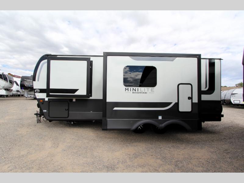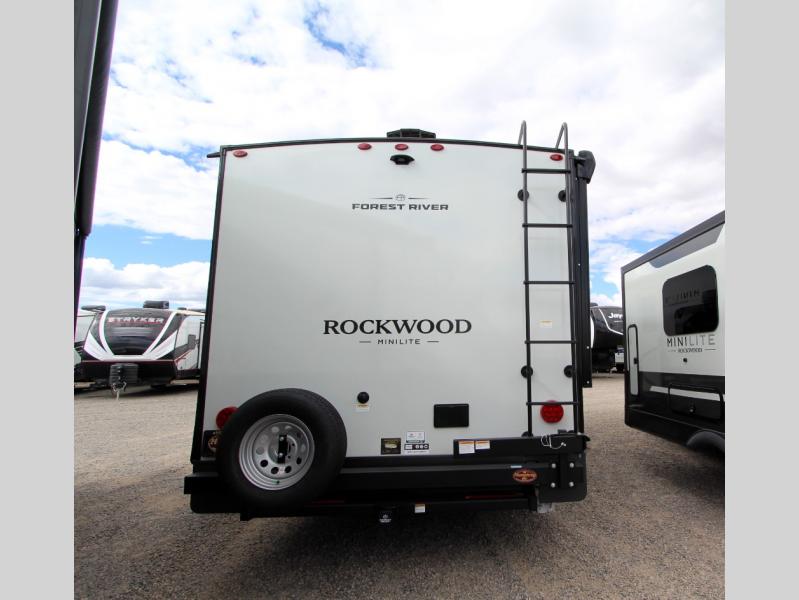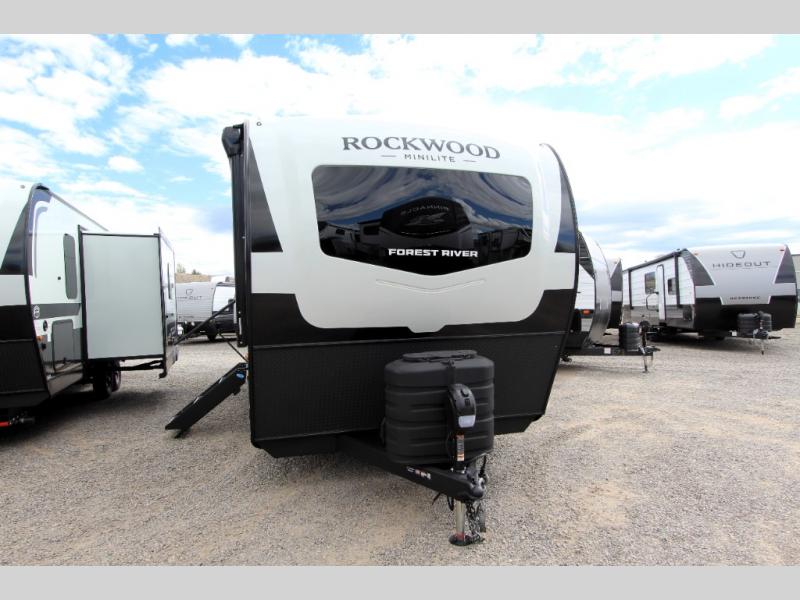 Each Rockwood Mini Lite travel trailer by Forest River is constructed with a fully laminated one-piece walkable roof, sleek frameless windows, and a six-sided full aluminum frame for strength and durability. The 12V thermostatically controlled heated tanks, plus radiant foil in the underbelly will allow you to camp well into the colder months, and the 200W roof solar panel will be perfect for a little off-gridding. Each model includes solid surface kitchen countertops, hidden hinge cabinet doors, roller shades, plus many more interior features. Having an AIR 360+ omnidirectional antenna with WiFi prep on board gives you the option to get some work done if it's needed, and the power tongue jack provides hassle-free set up, so you can enjoy more time relaxing!