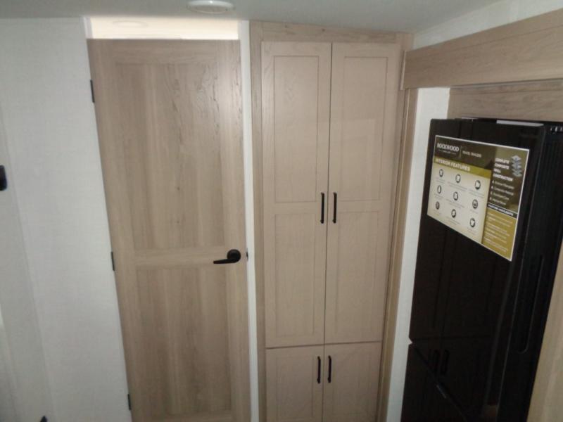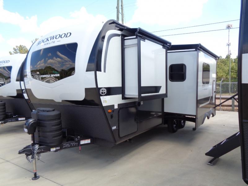 Each Rockwood Mini Lite travel trailer by Forest River is constructed with a fully laminated one-piece walkable roof, sleek frameless windows, and a six-sided full aluminum frame for strength and durability. The 12V thermostatically controlled heated tanks, plus radiant foil in the underbelly will allow you to camp well into the colder months, and the 200W roof solar panel will be perfect for a little off-gridding. Each model includes solid surface kitchen countertops, hidden hinge cabinet doors, roller shades, plus many more interior features. Having an AIR 360+ omnidirectional antenna with WiFi prep on board gives you the option to get some work done if it's needed, and the power tongue jack provides hassle-free set up, so you can enjoy more time relaxing!