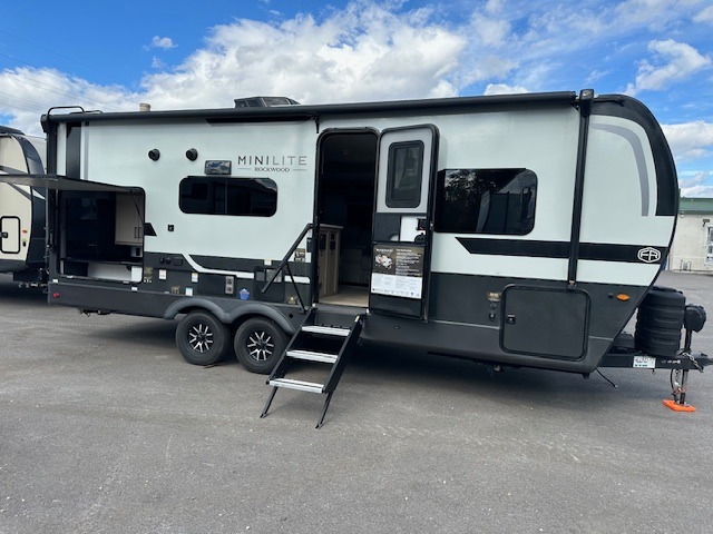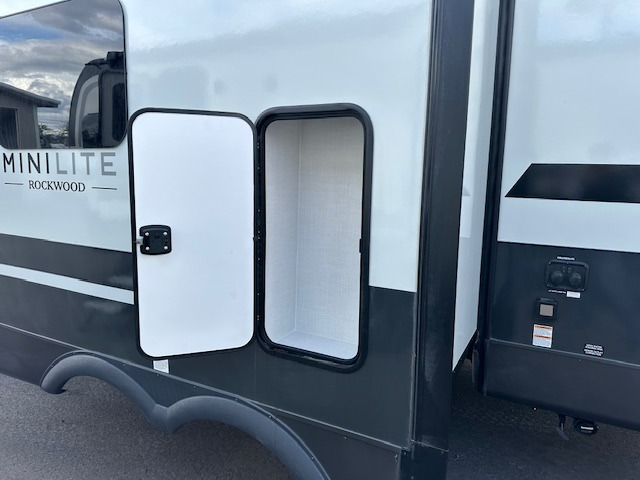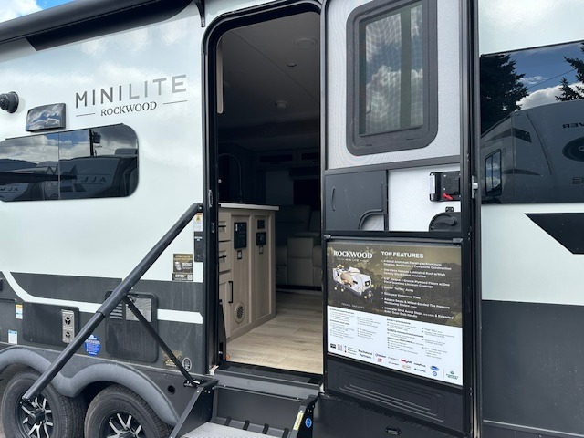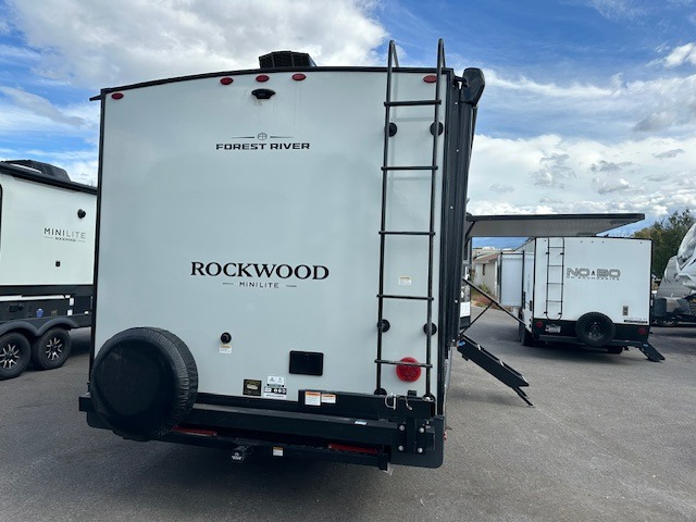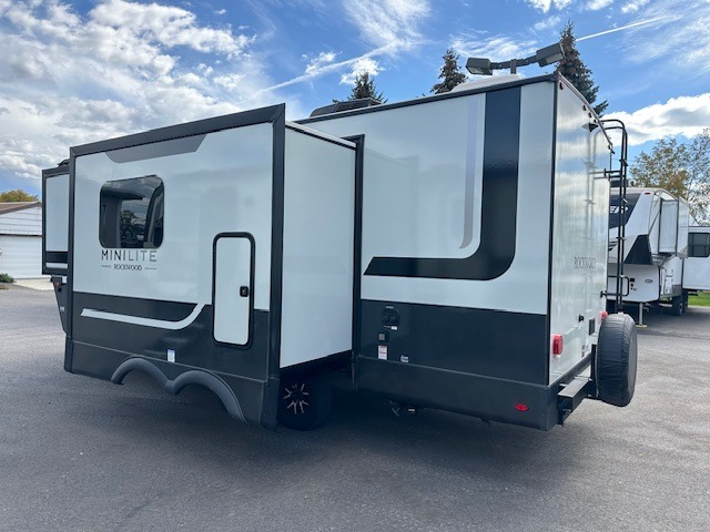 Each Rockwood Mini Lite travel trailer by Forest River is constructed with a fully laminated one-piece walkable roof, sleek frameless windows, and a six-sided full aluminum frame for strength and durability. The 12V thermostatically controlled heated tanks, plus radiant foil in the underbelly will allow you to camp well into the colder months, and the 200W roof solar panel will be perfect for a little off-gridding. Each model includes solid surface kitchen countertops, hidden hinge cabinet doors, roller shades, plus many more interior features. Having an AIR 360+ omnidirectional antenna with WiFi prep on board gives you the option to get some work done if it's needed, and the power tongue jack provides hassle-free set up, so you can enjoy more time relaxing!