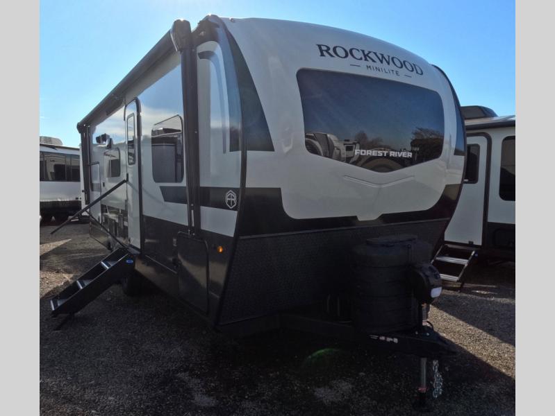 Each Rockwood Mini Lite travel trailer by Forest River is constructed with a fully laminated one-piece walkable roof, sleek frameless windows, and a six-sided full aluminum frame for strength and durability. The 12V thermostatically controlled heated tanks, plus radiant foil in the underbelly will allow you to camp well into the colder months, and the 200W roof solar panel will be perfect for a little off-gridding. Each model includes solid surface kitchen countertops, hidden hinge cabinet doors, roller shades, plus many more interior features. Having an AIR 360+ omnidirectional antenna with WiFi prep on board gives you the option to get some work done if it's needed, and the power tongue jack provides hassle-free set up, so you can enjoy more time relaxing!
