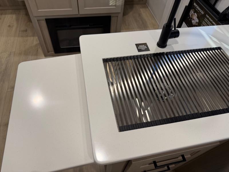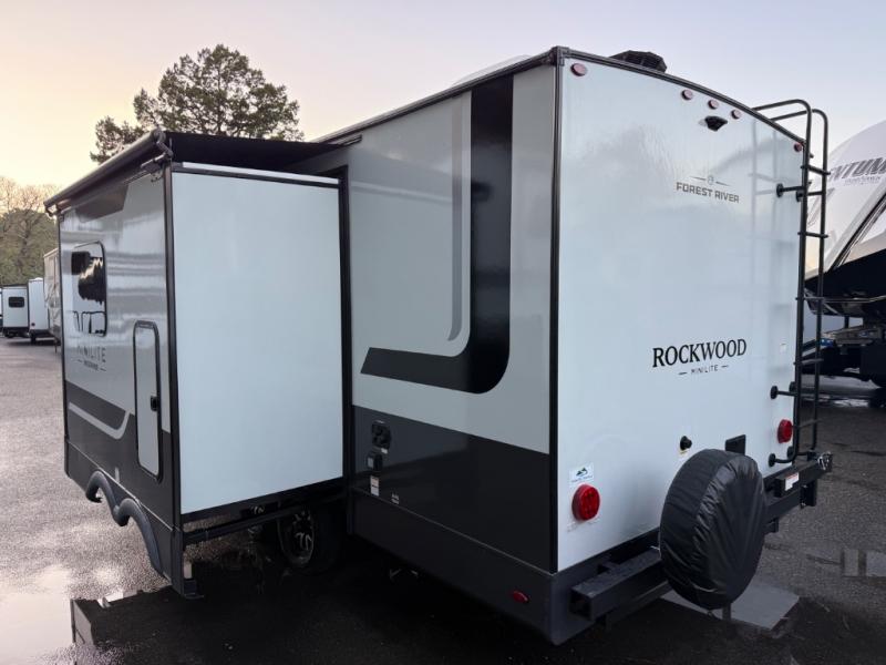 Each Rockwood Mini Lite travel trailer by Forest River is constructed with a fully laminated one-piece walkable roof, sleek frameless windows, and a six-sided full aluminum frame for strength and durability. The 12V thermostatically controlled heated tanks, plus radiant foil in the underbelly will allow you to camp well into the colder months, and the 200W roof solar panel will be perfect for a little off-gridding. Each model includes solid surface kitchen countertops, hidden hinge cabinet doors, roller shades, plus many more interior features. Having an AIR 360+ omnidirectional antenna with WiFi prep on board gives you the option to get some work done if it's needed, and the power tongue jack provides hassle-free set up, so you can enjoy more time relaxing!