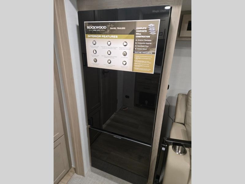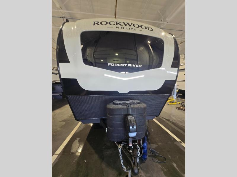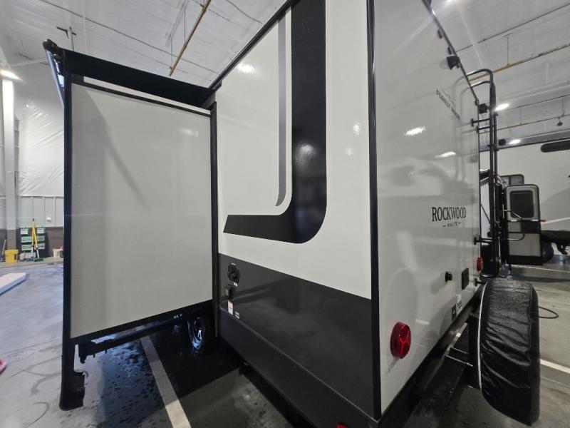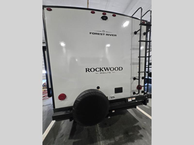 Each Rockwood Mini Lite travel trailer by Forest River is constructed with a fully laminated one-piece walkable roof, sleek frameless windows, and a six-sided full aluminum frame for strength and durability. The 12V thermostatically controlled heated tanks, plus radiant foil in the underbelly will allow you to camp well into the colder months, and the 200W roof solar panel will be perfect for a little off-gridding. Each model includes solid surface kitchen countertops, hidden hinge cabinet doors, roller shades, plus many more interior features. Having an AIR 360+ omnidirectional antenna with WiFi prep on board gives you the option to get some work done if it's needed, and the power tongue jack provides hassle-free set up, so you can enjoy more time relaxing!