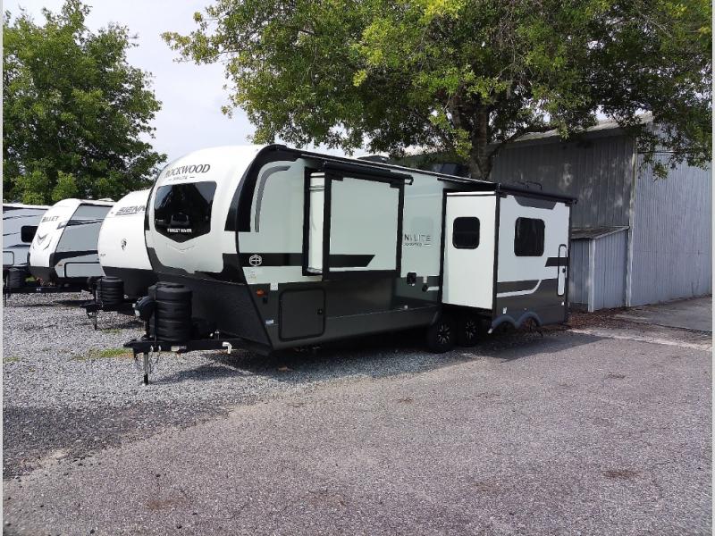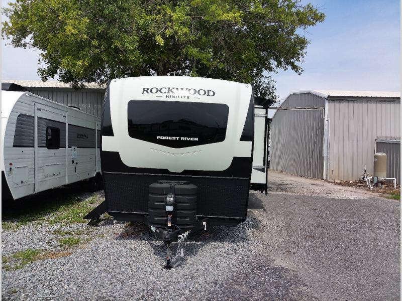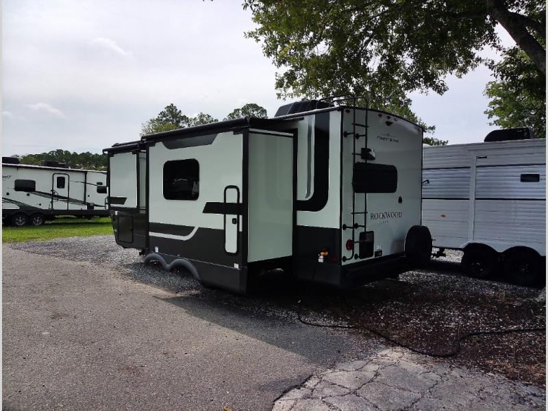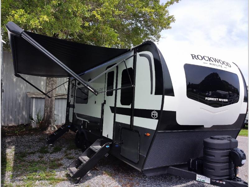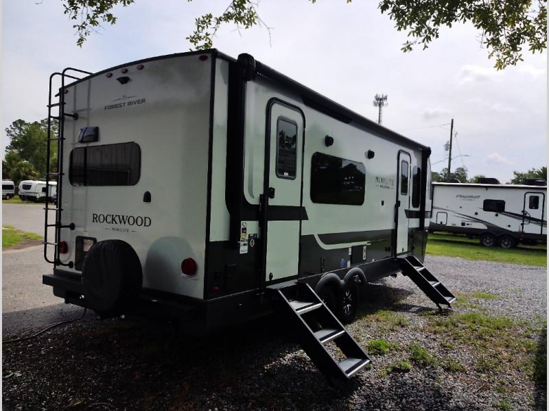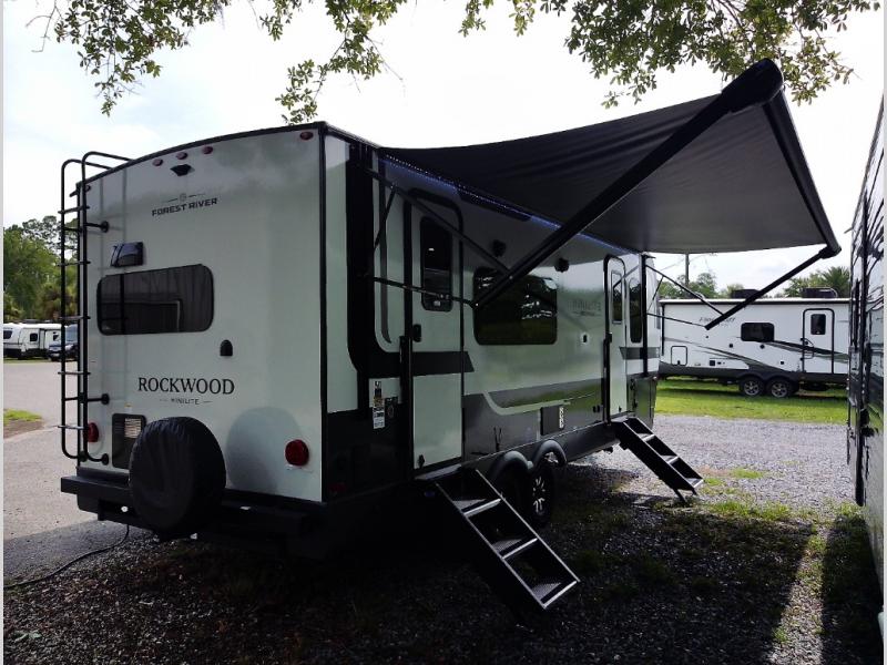 Each Rockwood Mini Lite travel trailer by Forest River is constructed with a fully laminated one-piece walkable roof, sleek frameless windows, and a six-sided full aluminum frame for strength and durability. The 12V thermostatically controlled heated tanks, plus radiant foil in the underbelly and slide out floors will allow you to camp well into the colder months, and the 200W roof solar panel will be perfect for a little off-gridding. Each model includes solid surface kitchen countertops, solid wood cabinet doors, night roller shades, plus many more interior features. Having an AIR 360+ omnidirectional antenna with WiFi prep on board gives you the option to get some work done if it's needed, and the power tongue jack provides hassle-free set up, so you can enjoy more time relaxing!