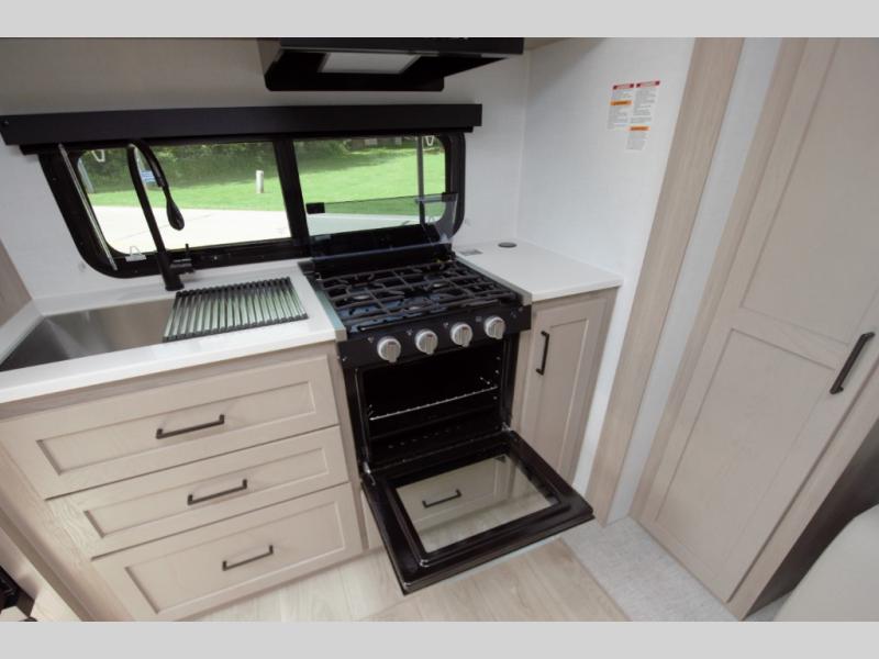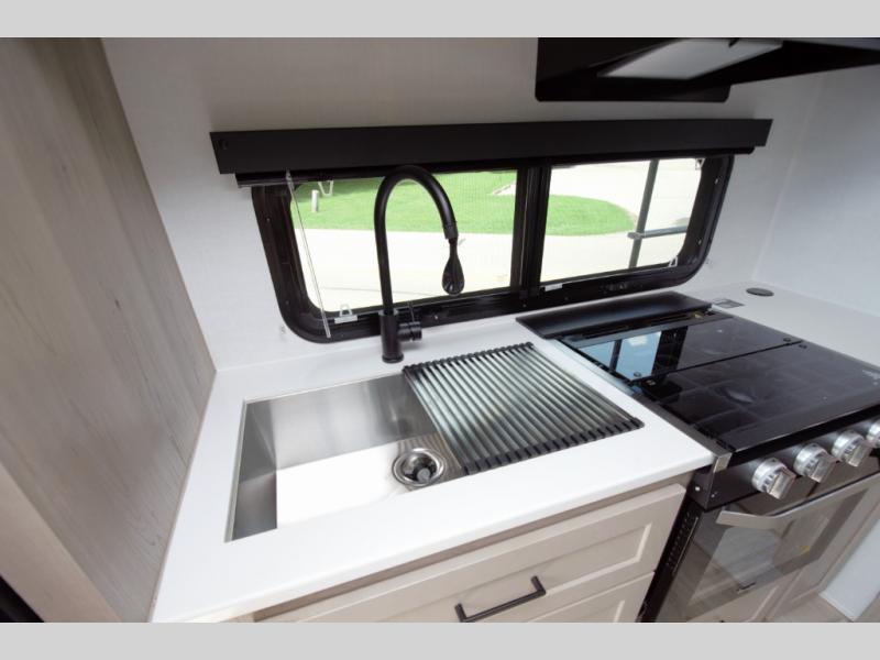 The Rockwood Mini Lite 2515S is a lightweight, easy to tow travel trailer designed for couples or small families looking for comfort and functionality. The rear kitchen offers plenty of counter space, a large pantry, and modern appliances for meal prep. Enjoy breakfast indoors or outside using the convenient exterior griddle.