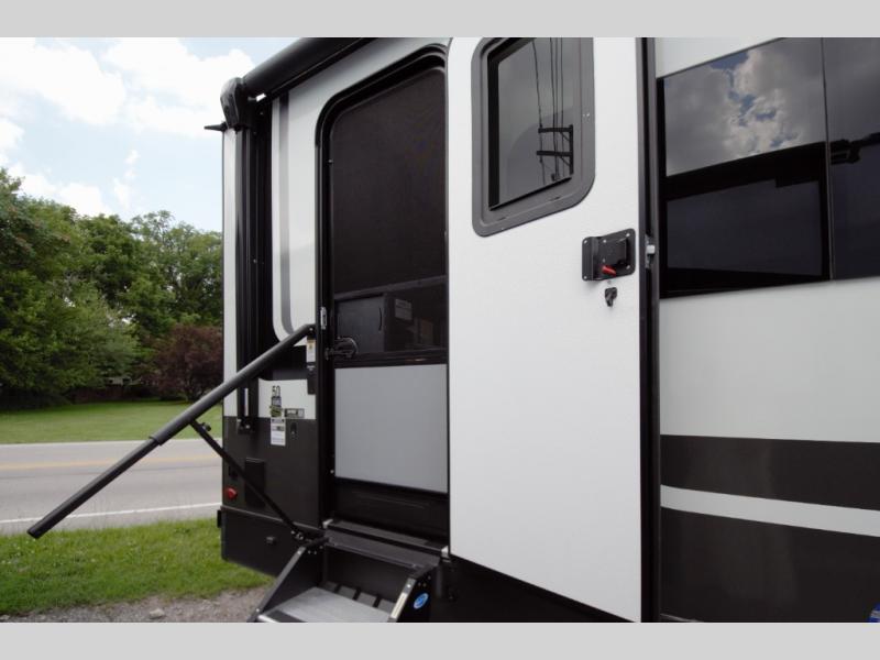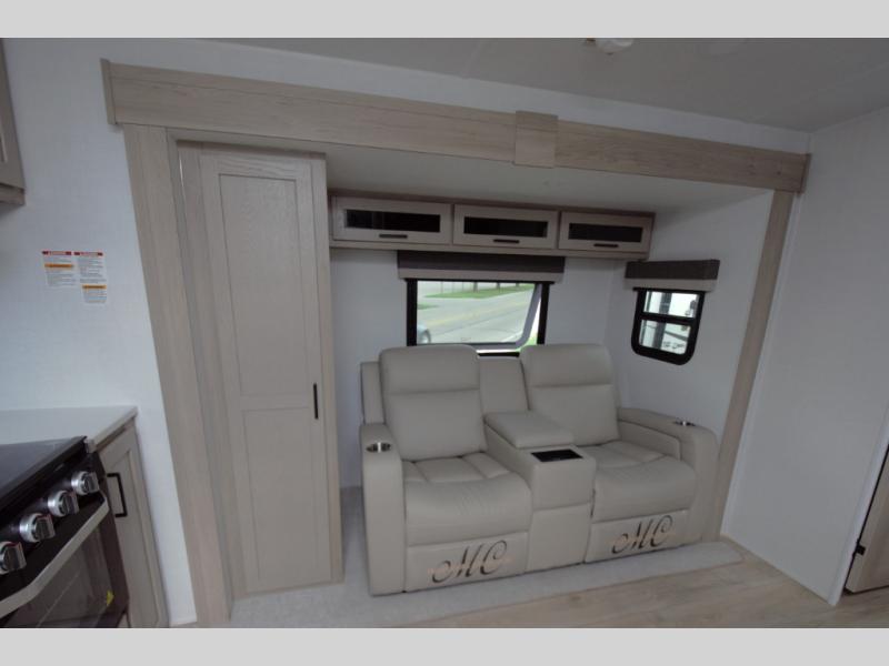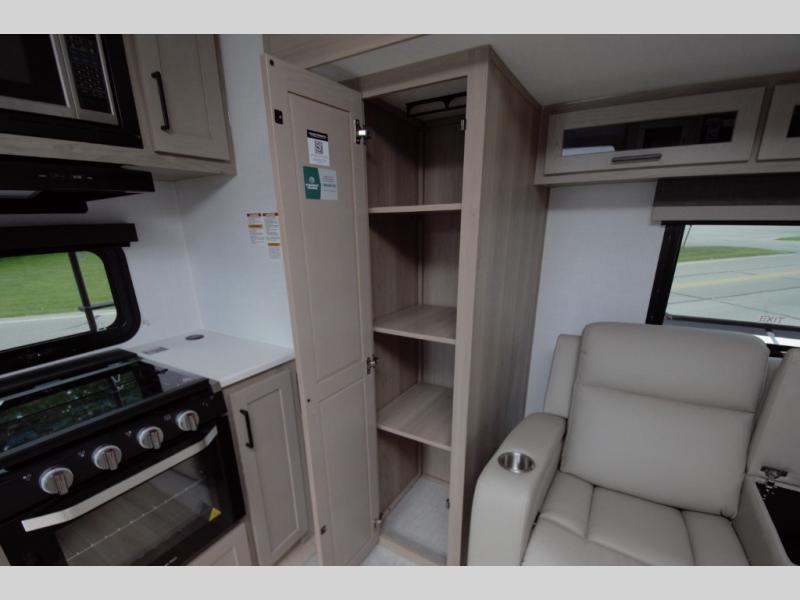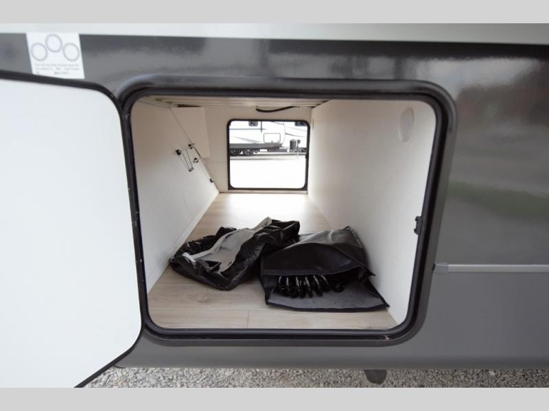 Relax indoors on the 67 inch theater seating with cupholders, and stay organized with ample storage throughout, including drop frame pass through storage underneath for larger camping gear.