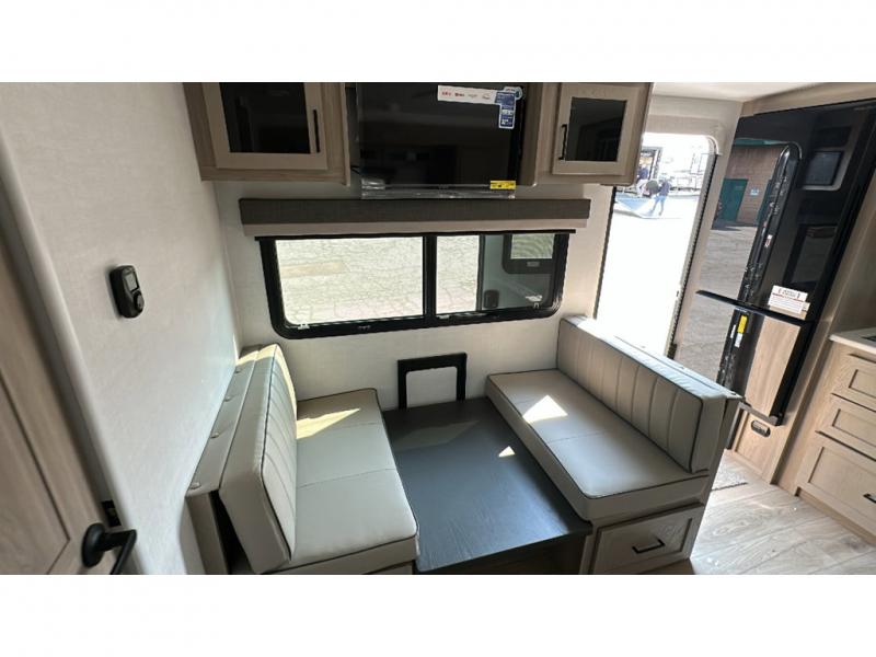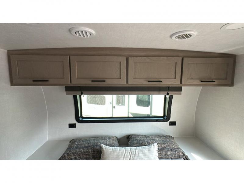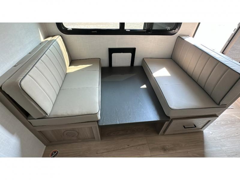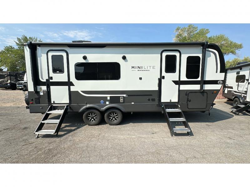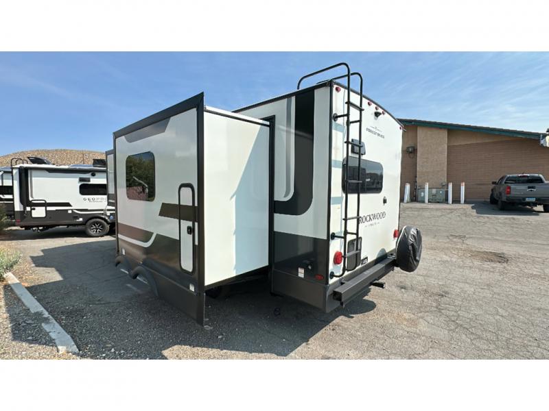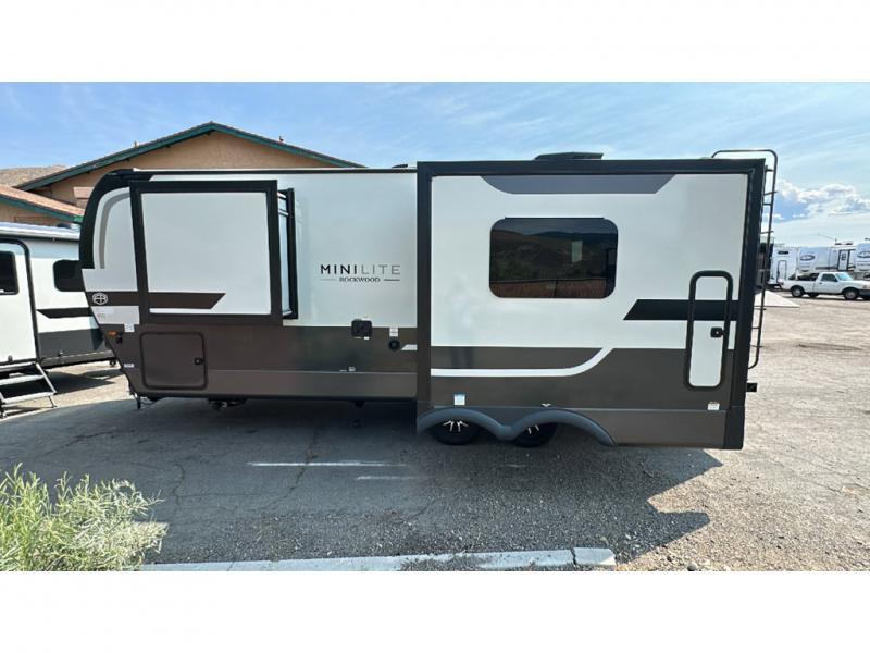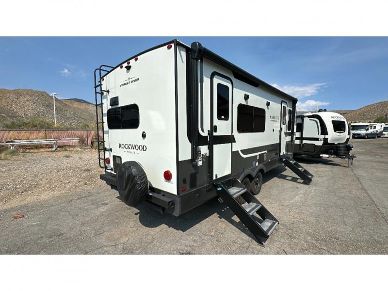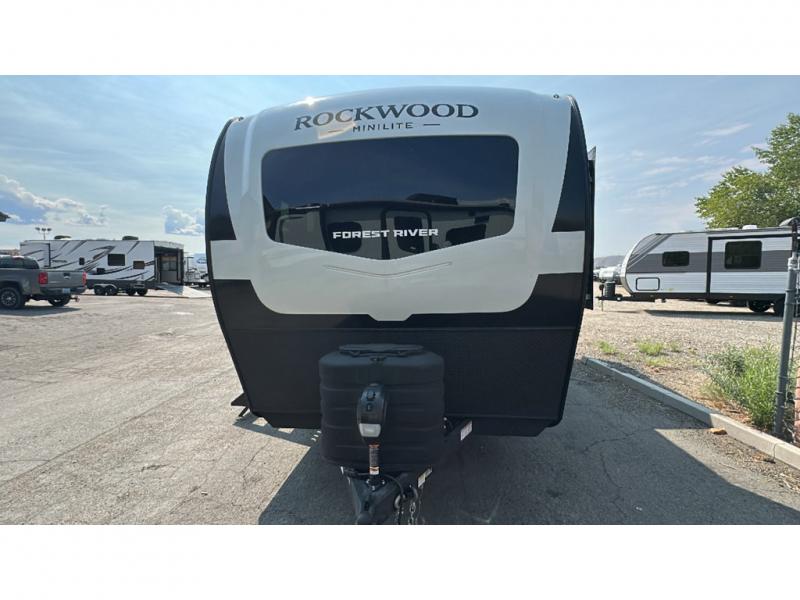 Each Rockwood Mini Lite travel trailer by Forest River is constructed with a fully laminated one-piece walkable roof, sleek frameless windows, and a six-sided full aluminum frame for strength and durability. The 12V thermostatically controlled heated tanks, plus radiant foil in the underbelly and slide out floors will allow you to camp well into the colder months, and the 200W roof solar panel will be perfect for a little off-gridding. Each model includes solid surface kitchen countertops, solid wood cabinet doors, night roller shades, plus many more interior features. Having an AIR 360+ omnidirectional antenna with WiFi prep on board gives you the option to get some work done if it's needed, and the power tongue jack provides hassle-free set up, so you can enjoy more time relaxing!