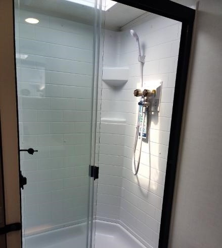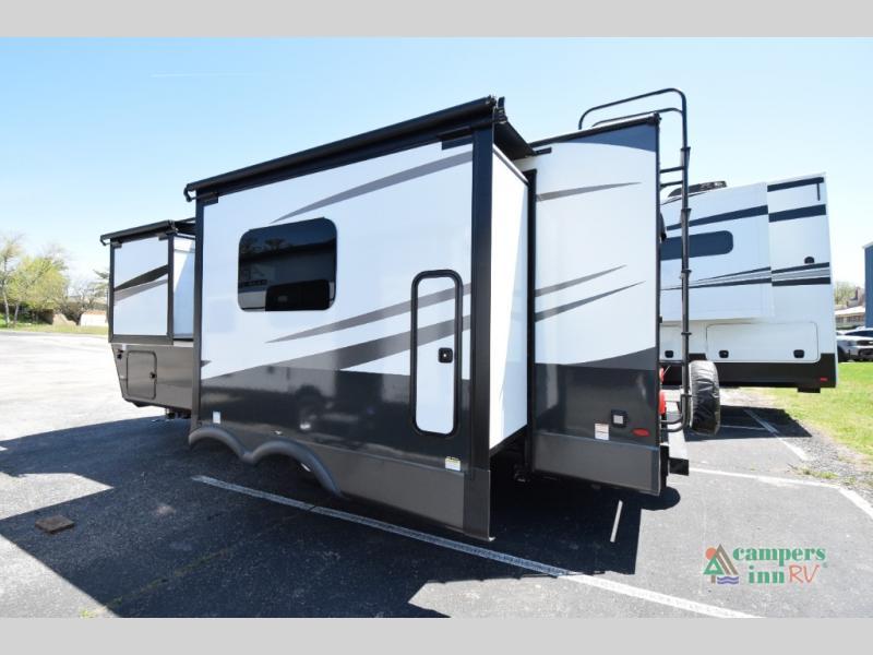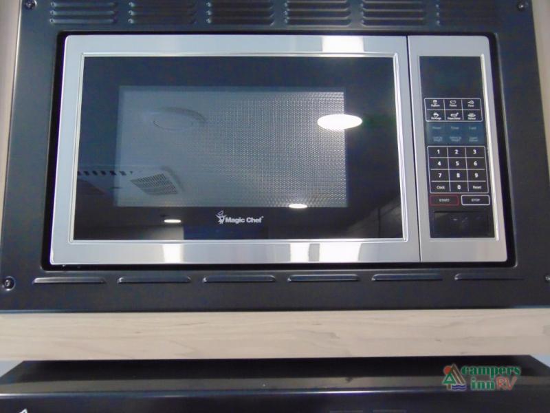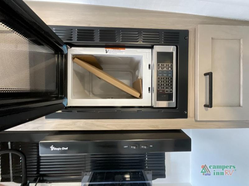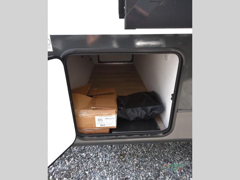 You and your spouse will have a great time camping in this travel trailer! You will have your own RV queen bed to sleep on in the front private bedroom, and an optional TV can be added if you enjoy the morning news in bed. Breakfast can be made on the three burner cooktop in the rear kitchen, or head outdoors to cook on the outside griddle. The 67" theater seating with cupholders will provide a place to relax and dine together, and the spacious walk-through bath will allow you to clean up before you head out for the day. This model includes plenty of storage space, including a pantry for your snacks, a wardrobe slide out in the bedroom, plus a drop-frame pass-through storage for larger camp gear!