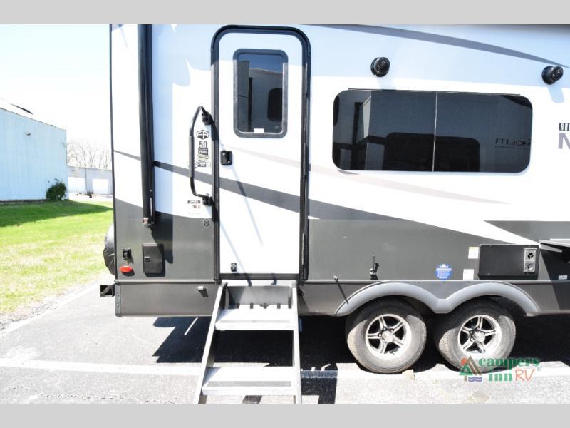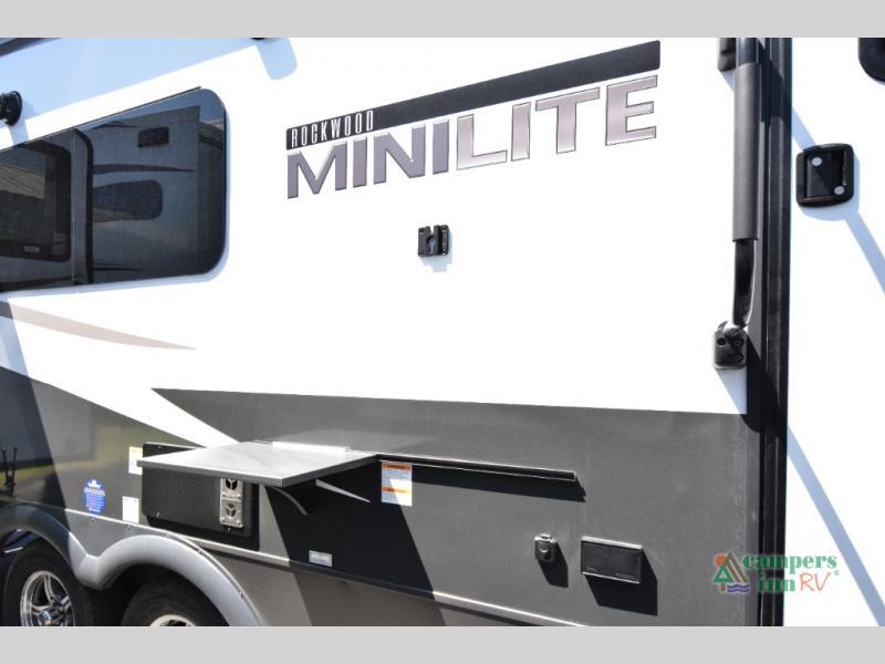 Each Rockwood Mini Lite travel trailer by Forest River is constructed with a fully laminated one-piece walkable roof, sleek frameless windows, and a six-sided full aluminum frame for strength and durability. The 12V thermostatically controlled heated tanks, plus radiant foil in the underbelly will allow you to camp well into the colder months, and the 200W roof solar panel will be perfect for a little off-gridding. Each model includes solid surface kitchen countertops, hidden hinge cabinet doors, roller shades, plus many more interior features. Having an AIR 360+ omnidirectional antenna with WiFi prep on board gives you the option to get some work done if it's needed, and the power tongue jack provides hassle-free set up, so you can enjoy more time relaxing!