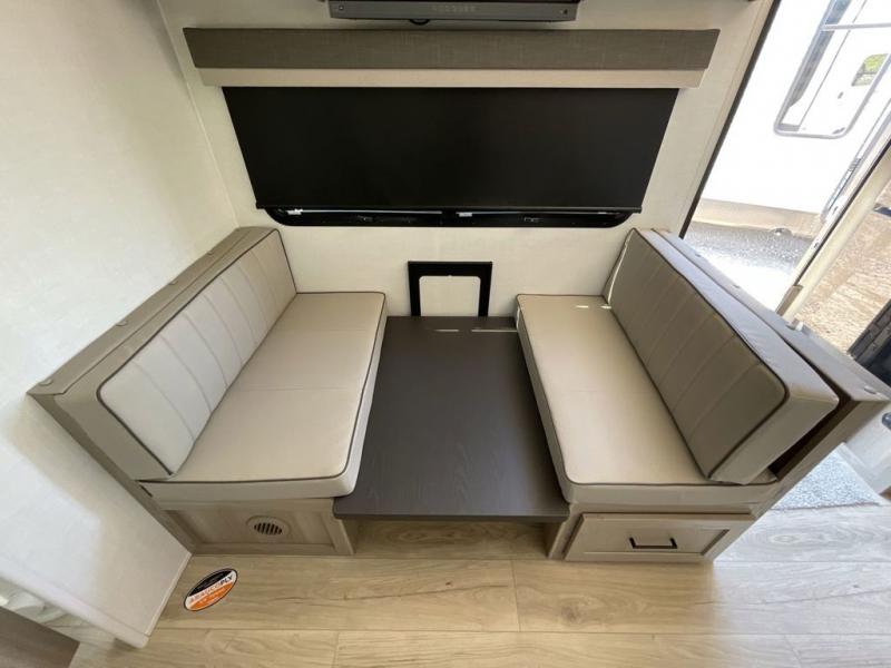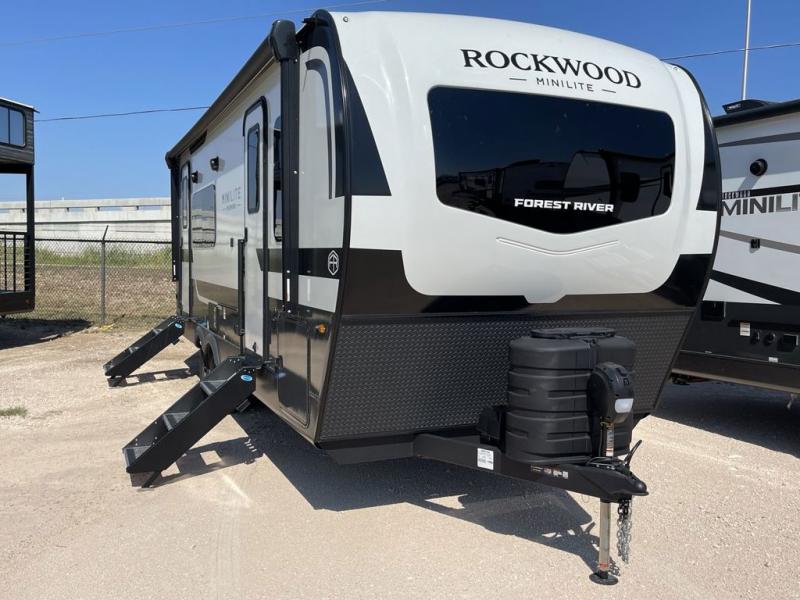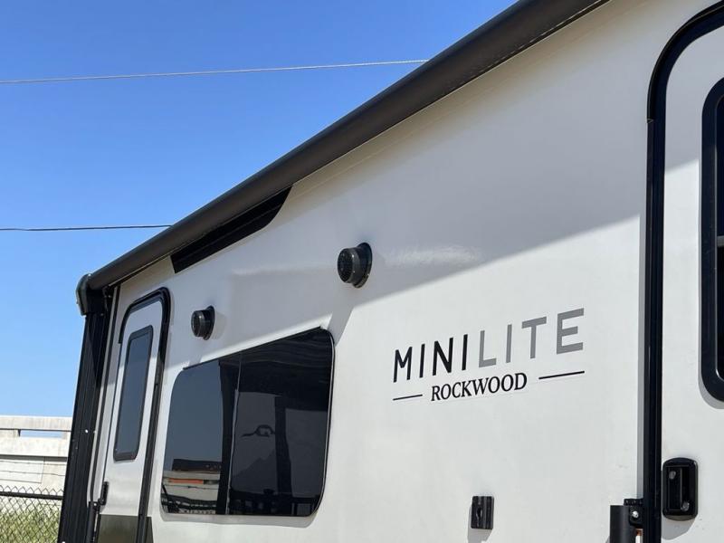 Each Rockwood Mini Lite travel trailer by Forest River is constructed with a fully laminated one-piece walkable roof, sleek frameless windows, and a six-sided full aluminum frame for strength and durability. The 12V thermostatically controlled heated tanks, plus radiant foil in the underbelly will allow you to camp well into the colder months, and the 200W roof solar panel will be perfect for a little off-gridding. Each model includes solid surface kitchen countertops, hidden hinge cabinet doors, roller shades, plus many more interior features. Having an AIR 360+ omnidirectional antenna with WiFi prep on board gives you the option to get some work done if it's needed, and the power tongue jack provides hassle-free set up, so you can enjoy more time relaxing!