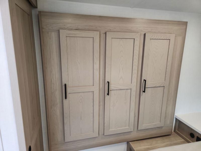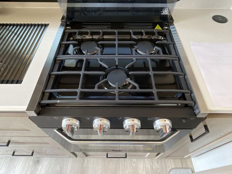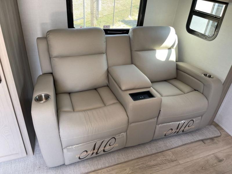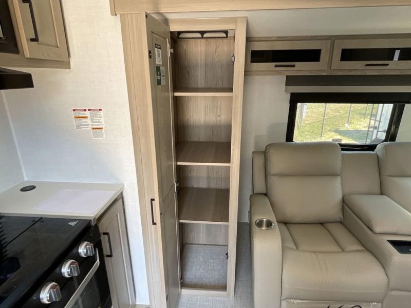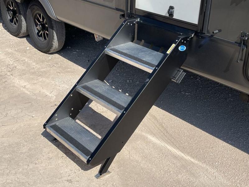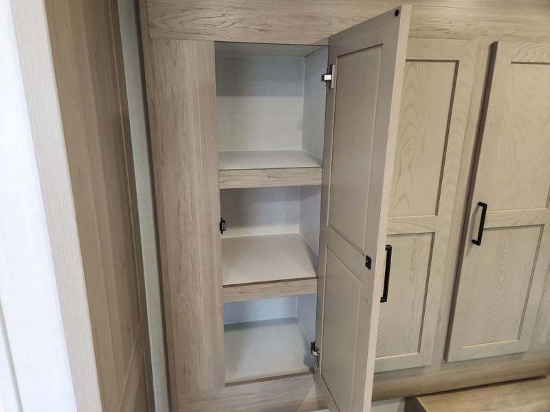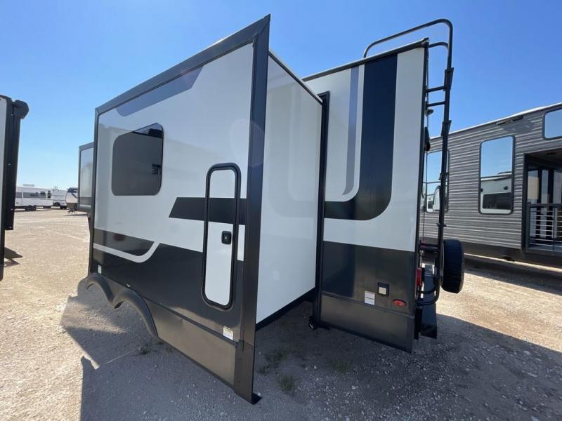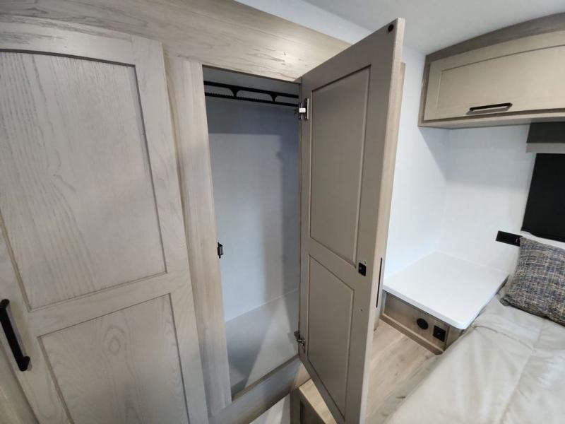 You and your spouse will have a great time camping in this travel trailer! You will have your own RV queen bed to sleep on in the front private bedroom, and an optional TV can be added if you enjoy the morning news in bed. Breakfast can be made on the three burner cooktop in the rear kitchen, or head outdoors to cook on the outside griddle. The 67" theater seating with cupholders will provide a place to relax and dine together, and the spacious walk-through bath will allow you to clean up before you head out for the day. This model includes plenty of storage space, including a pantry for your snacks, a wardrobe slide out in the bedroom, plus a drop-frame pass-through storage for larger camp gear!