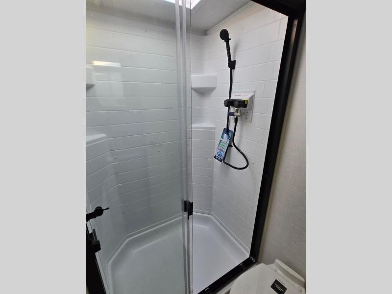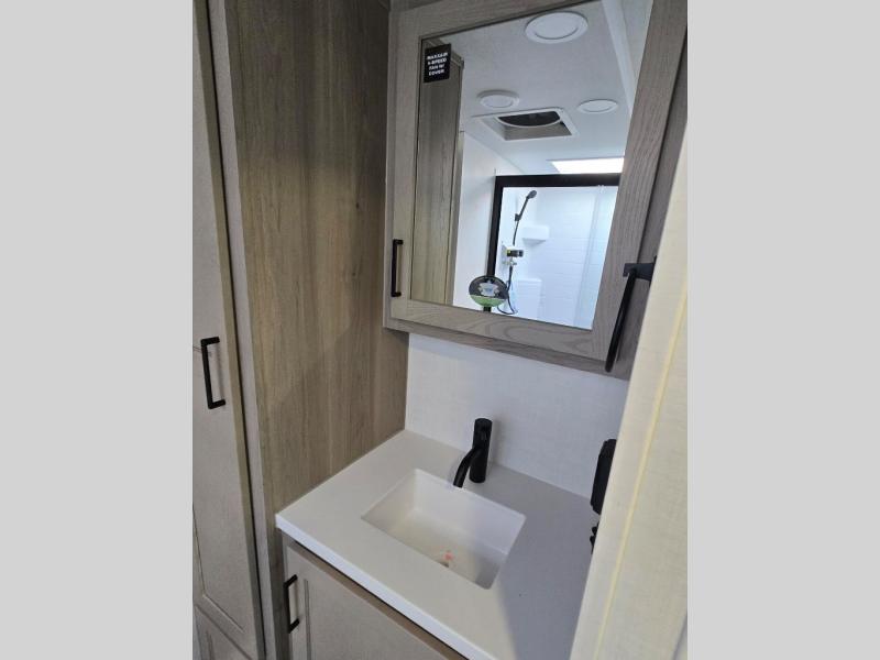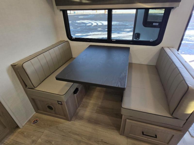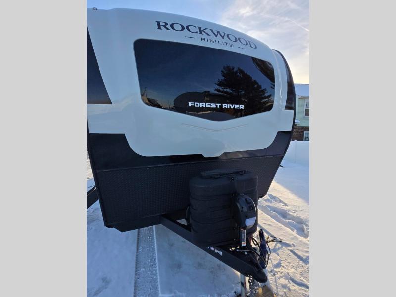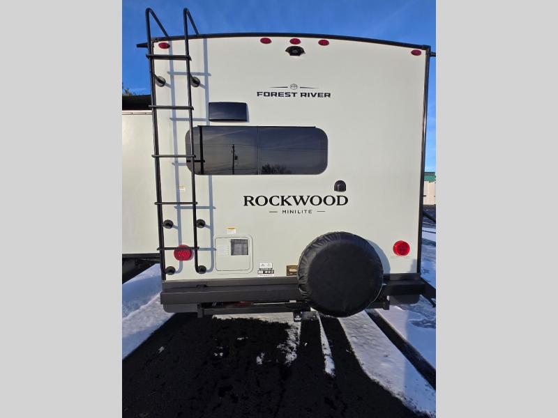 Each Rockwood Mini Lite travel trailer by Forest River is constructed with a fully laminated one-piece walkable roof, sleek frameless windows, and a six-sided full aluminum frame for strength and durability. The 12V thermostatically controlled heated tanks, plus radiant foil in the underbelly will allow you to camp well into the colder months, and the 200W roof solar panel will be perfect for a little off-gridding. Each model includes solid surface kitchen countertops, hidden hinge cabinet doors, roller shades, plus many more interior features. Having an AIR 360+ omnidirectional antenna with WiFi prep on board gives you the option to get some work done if it's needed, and the power tongue jack provides hassle-free set up, so you can enjoy more time relaxing!