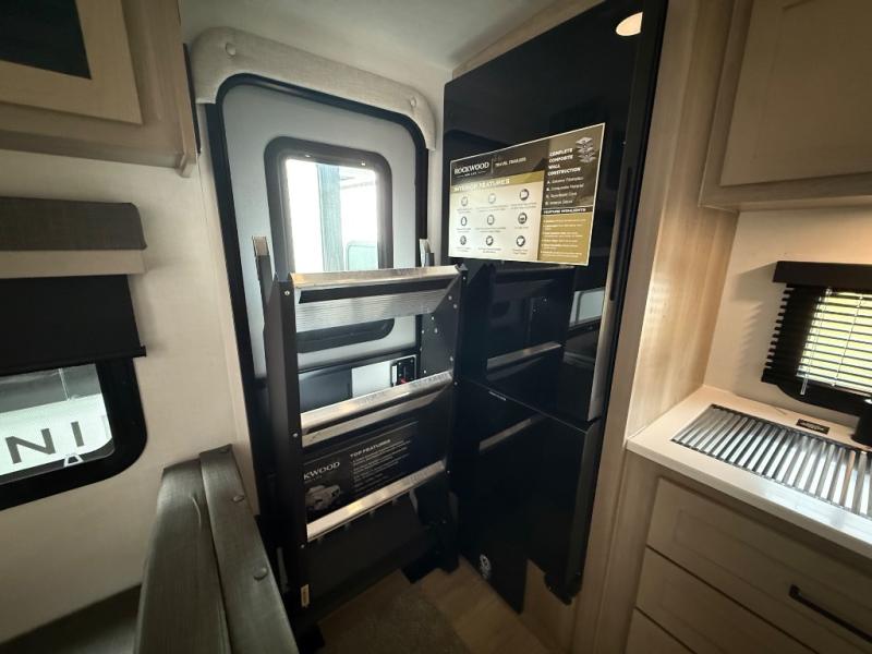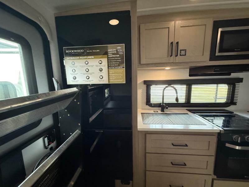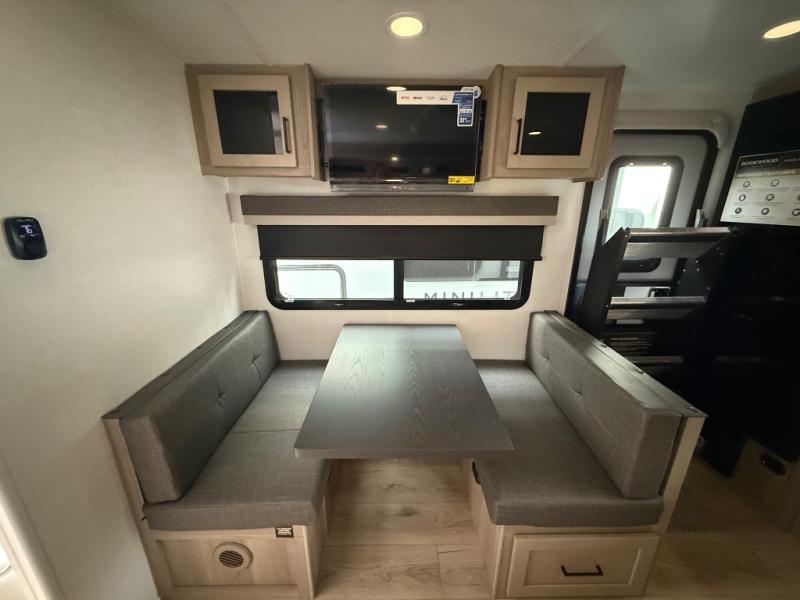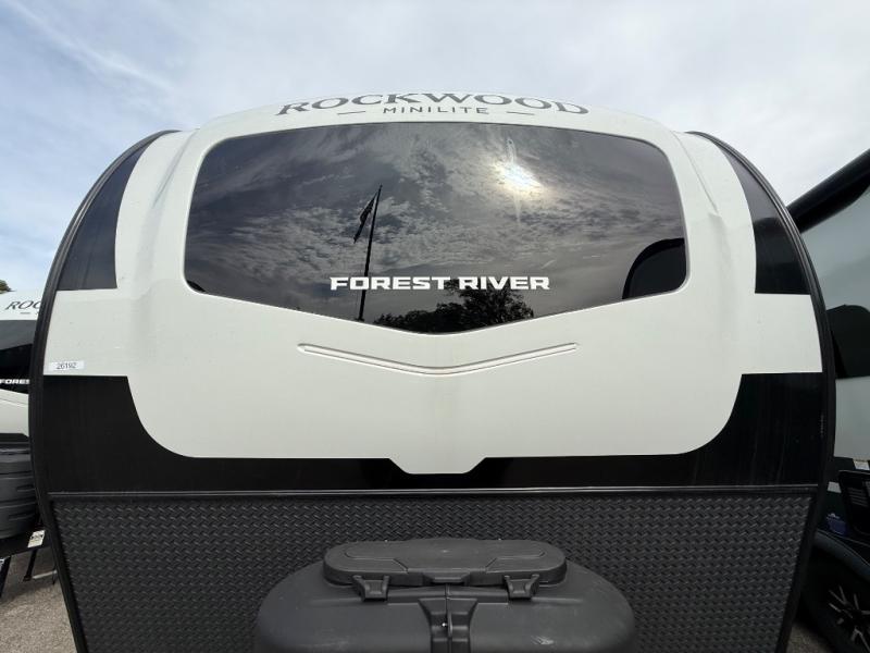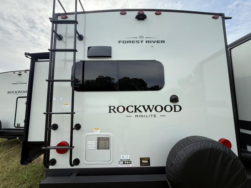 Each Rockwood Mini Lite travel trailer by Forest River is constructed with a fully laminated one-piece walkable roof, sleek frameless windows, and a six-sided full aluminum frame for strength and durability. The 12V thermostatically controlled heated tanks, plus radiant foil in the underbelly will allow you to camp well into the colder months, and the 200W roof solar panel will be perfect for a little off-gridding. Each model includes solid surface kitchen countertops, hidden hinge cabinet doors, roller shades, plus many more interior features. Having an AIR 360+ omnidirectional antenna with WiFi prep on board gives you the option to get some work done if it's needed, and the power tongue jack provides hassle-free set up, so you can enjoy more time relaxing!