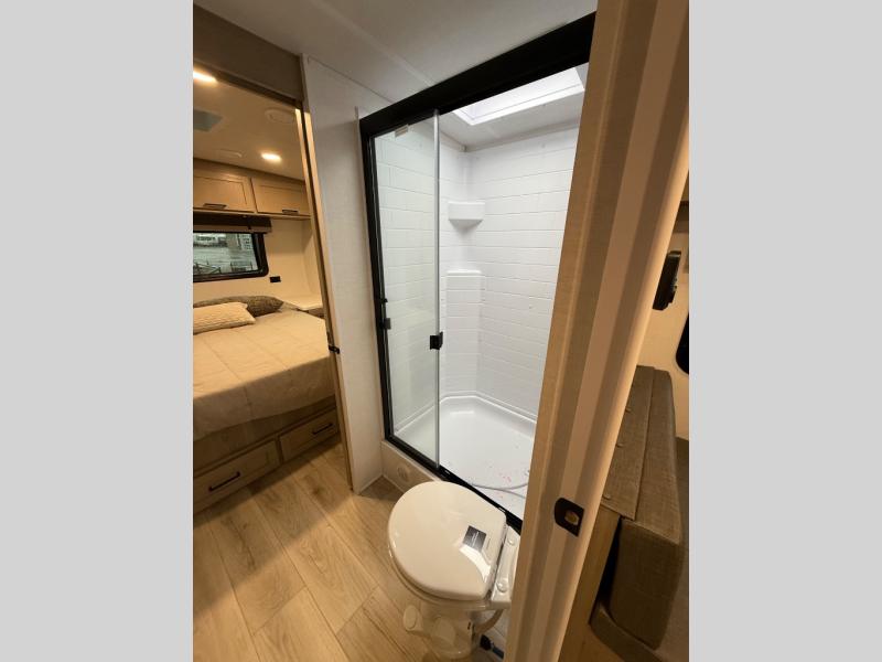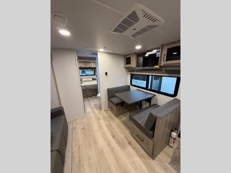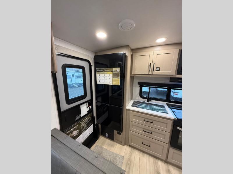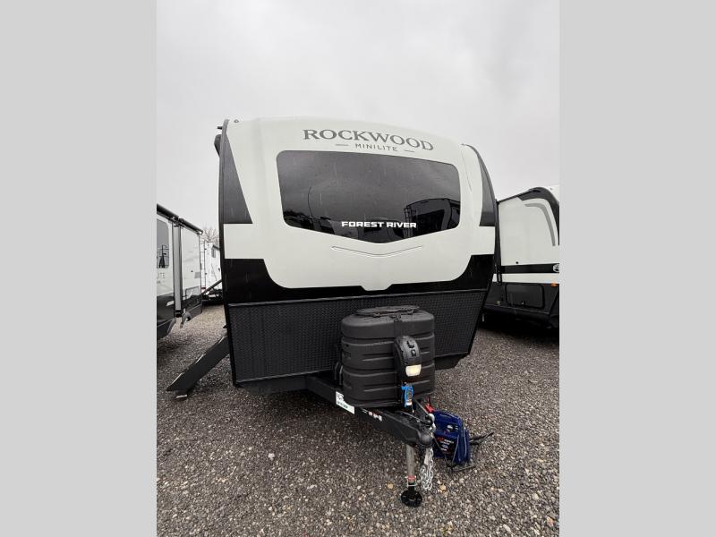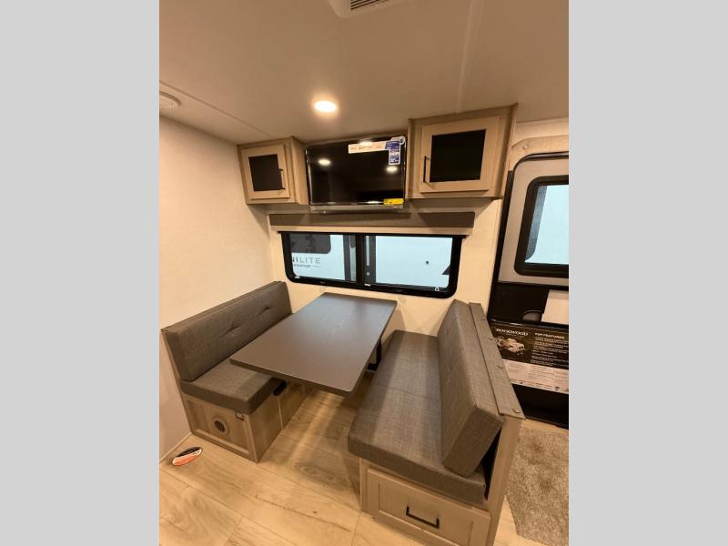 Each Rockwood Mini Lite travel trailer by Forest River is constructed with a fully laminated one-piece walkable roof, sleek frameless windows, and a six-sided full aluminum frame for strength and durability. The 12V thermostatically controlled heated tanks, plus radiant foil in the underbelly will allow you to camp well into the colder months, and the 200W roof solar panel will be perfect for a little off-gridding. Each model includes solid surface kitchen countertops, hidden hinge cabinet doors, roller shades, plus many more interior features. Having an AIR 360+ omnidirectional antenna with WiFi prep on board gives you the option to get some work done if it's needed, and the power tongue jack provides hassle-free set up, so you can enjoy more time relaxing!