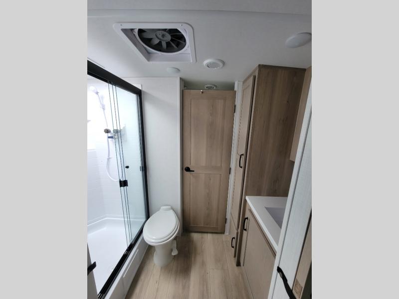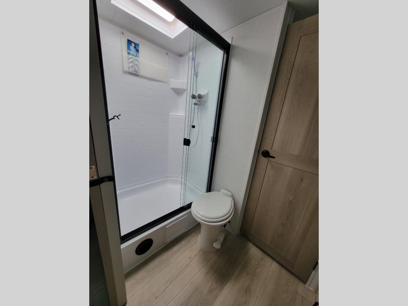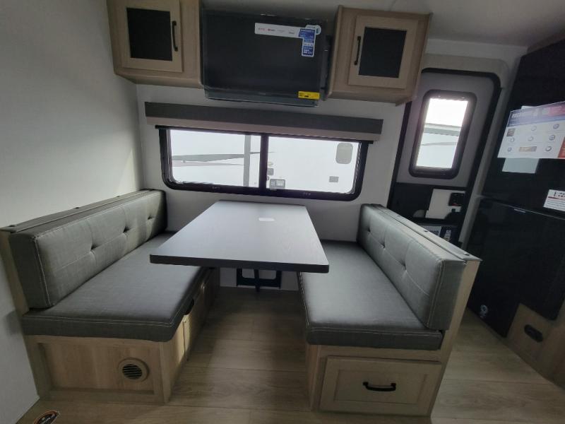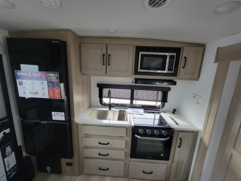 Each Rockwood Mini Lite travel trailer by Forest River is constructed with a fully laminated one-piece walkable roof, sleek frameless windows, and a six-sided full aluminum frame for strength and durability. The 12V thermostatically controlled heated tanks, plus radiant foil in the underbelly will allow you to camp well into the colder months, and the 200W roof solar panel will be perfect for a little off-gridding. Each model includes solid surface kitchen countertops, hidden hinge cabinet doors, roller shades, plus many more interior features. Having an AIR 360+ omnidirectional antenna with WiFi prep on board gives you the option to get some work done if it's needed, and the power tongue jack provides hassle-free set up, so you can enjoy more time relaxing!