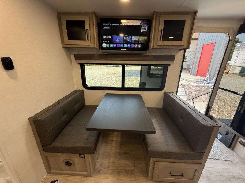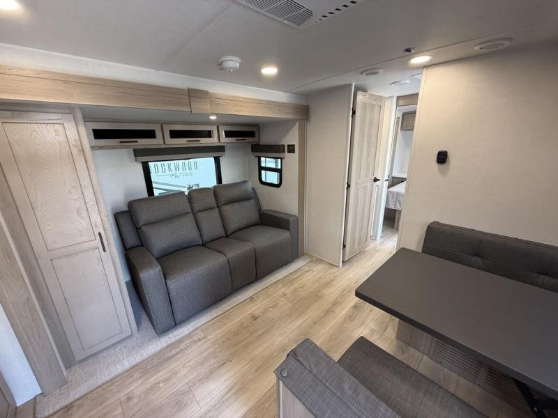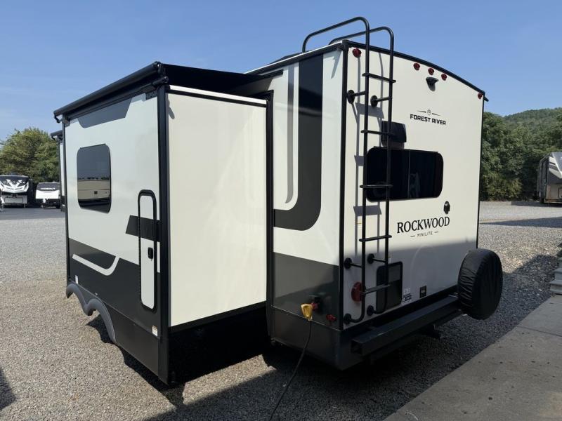 Each Rockwood Mini Lite travel trailer by Forest River is constructed with a fully laminated one-piece walkable roof, sleek frameless windows, and a six-sided full aluminum frame for strength and durability. The 12V thermostatically controlled heated tanks, plus radiant foil in the underbelly will allow you to camp well into the colder months, and the 200W roof solar panel will be perfect for a little off-gridding. Each model includes solid surface kitchen countertops, hidden hinge cabinet doors, roller shades, plus many more interior features. Having an AIR 360+ omnidirectional antenna with WiFi prep on board gives you the option to get some work done if it's needed, and the power tongue jack provides hassle-free set up, so you can enjoy more time relaxing!