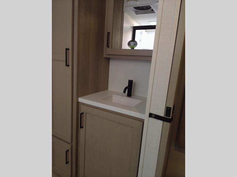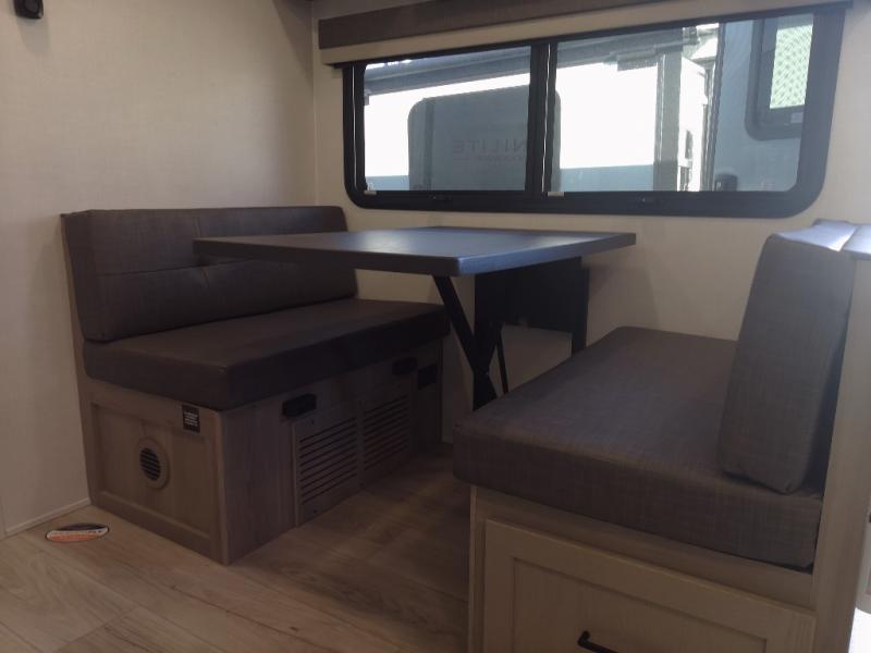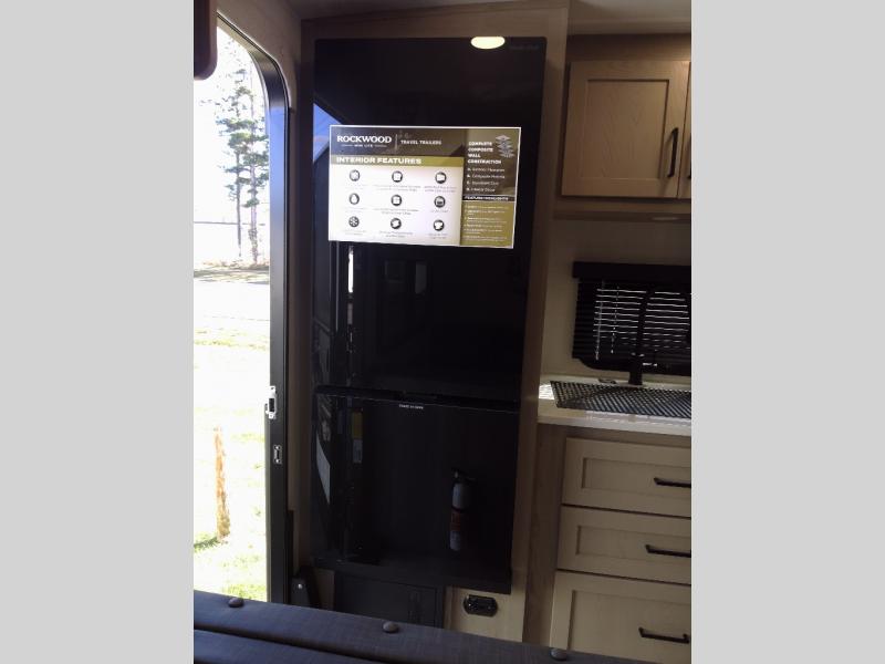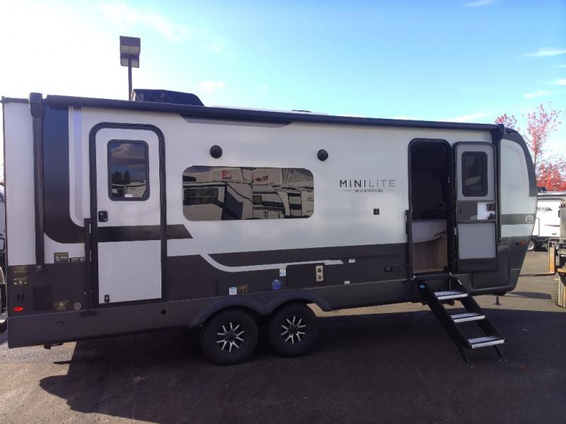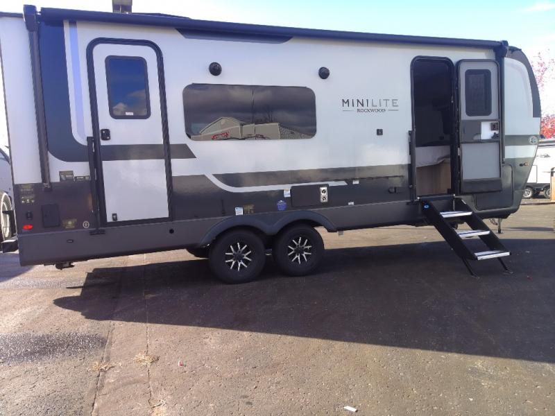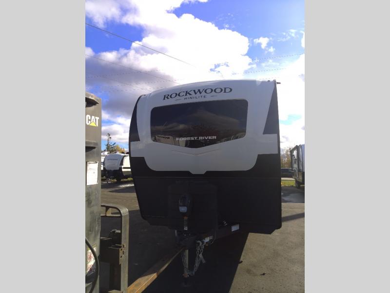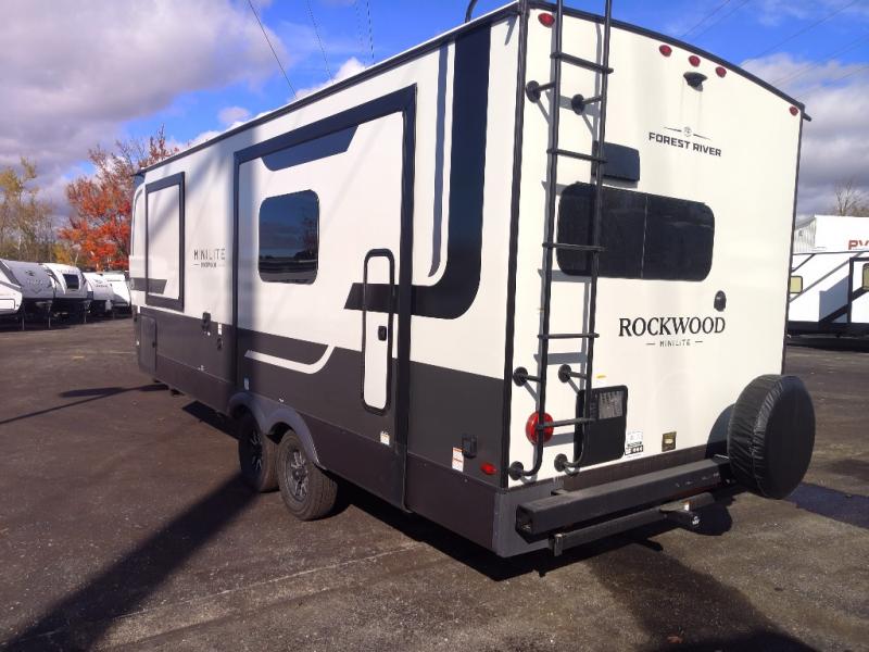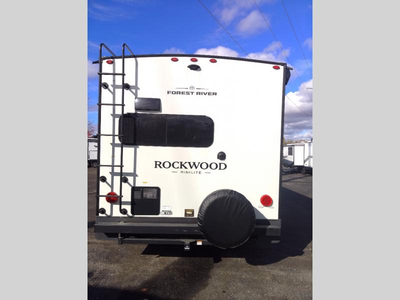 Each Rockwood Mini Lite travel trailer by Forest River is constructed with a fully laminated one-piece walkable roof, sleek frameless windows, and a six-sided full aluminum frame for strength and durability. The 12V thermostatically controlled heated tanks, plus radiant foil in the underbelly will allow you to camp well into the colder months, and the 200W roof solar panel will be perfect for a little off-gridding. Each model includes solid surface kitchen countertops, hidden hinge cabinet doors, roller shades, plus many more interior features. Having an AIR 360+ omnidirectional antenna with WiFi prep on board gives you the option to get some work done if it's needed, and the power tongue jack provides hassle-free set up, so you can enjoy more time relaxing!