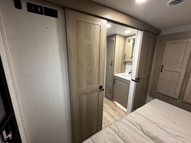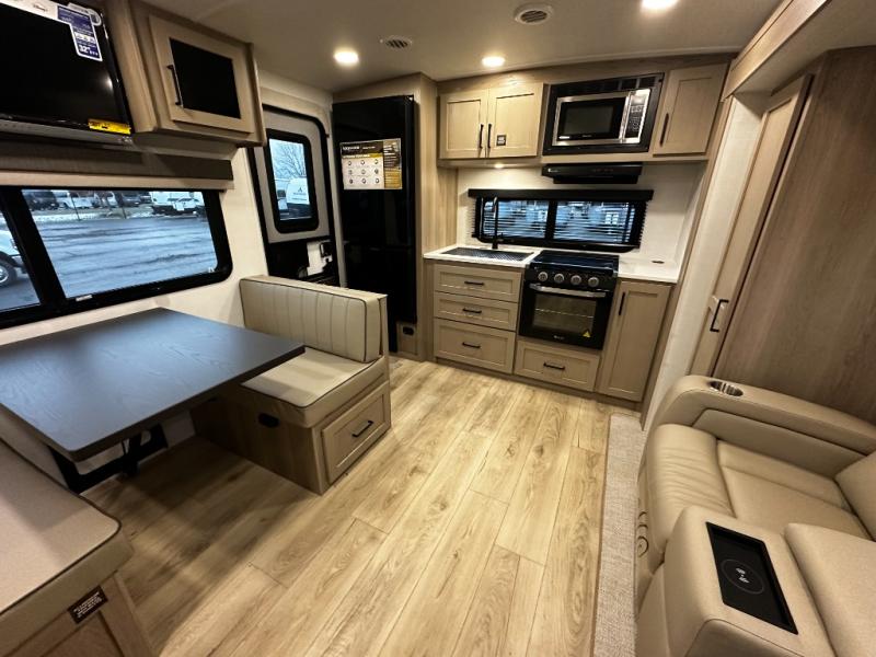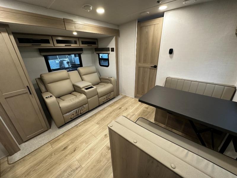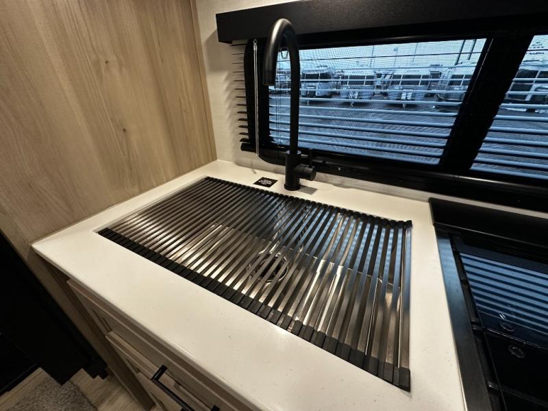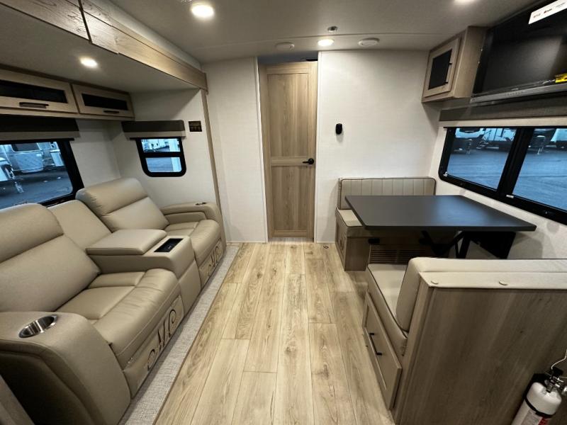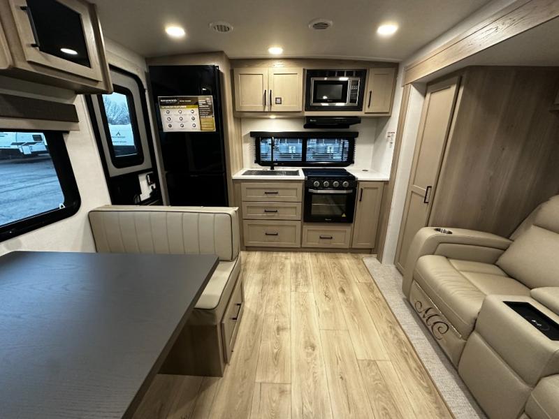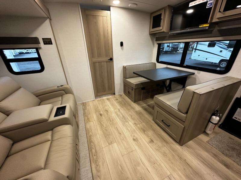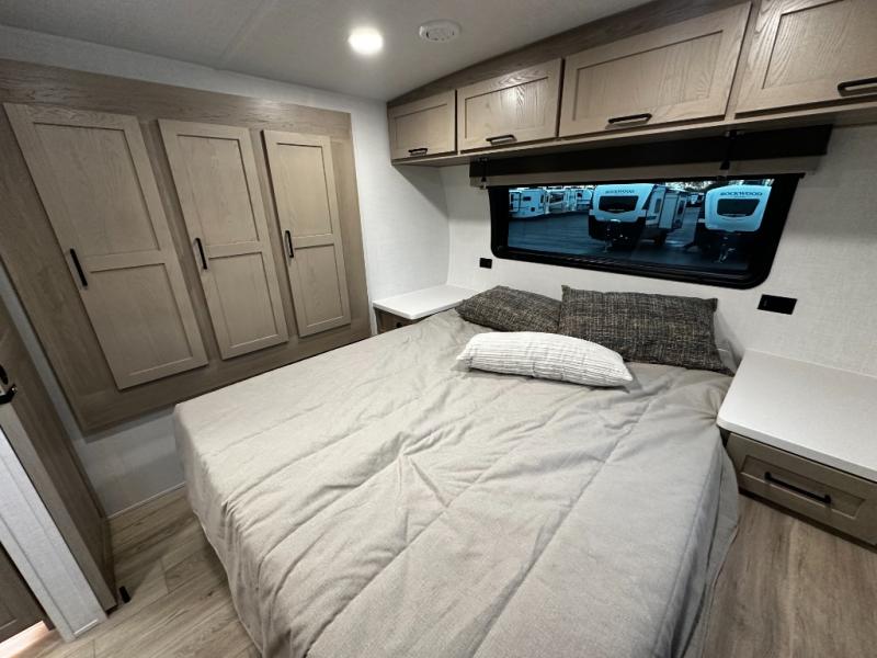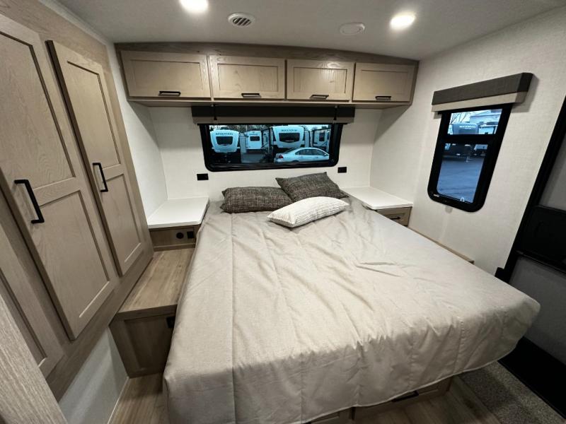Inside the Mini Lite 2515S, you’ll find a thoughtfully designed interior that maximizes space and usability. The cozy master sleeping area provides a restful retreat, while the fully equipped kitchen features modern appliances, ample counter space, and smart storage solutions that make meal preparation effortless. The living area is designed for relaxation and socializing, offering a welcoming environment to unwind after a day of adventure. High-quality finishes and durable materials ensure a reliable travel experience, giving you confidence and peace of mind on every journey.