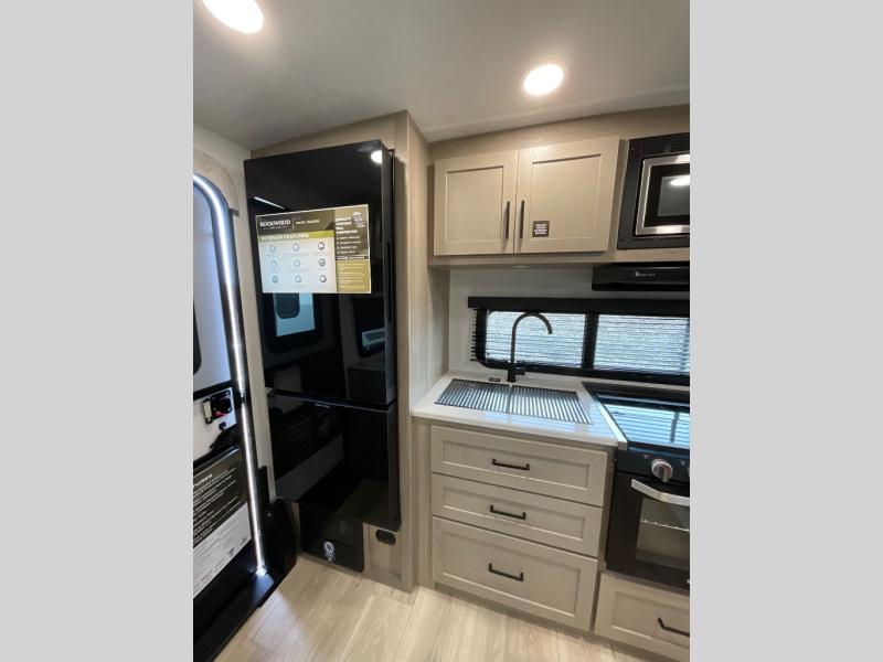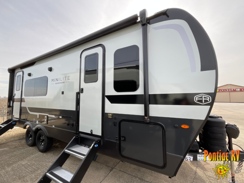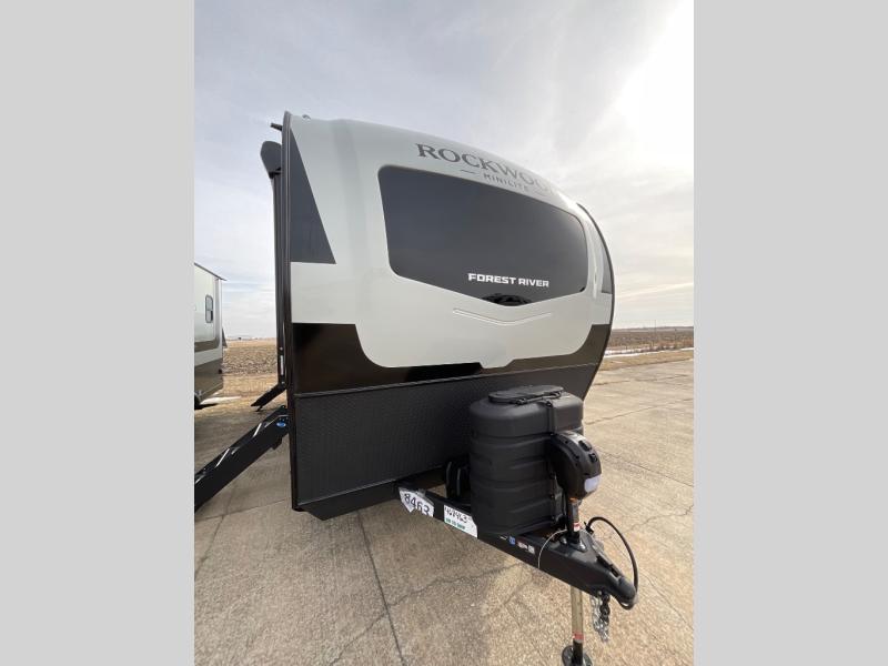 Each Rockwood Mini Lite travel trailer by Forest River is constructed with a fully laminated one-piece walkable roof, sleek frameless windows, and a six-sided full aluminum frame for strength and durability. The 12V thermostatically controlled heated tanks, plus radiant foil in the underbelly will allow you to camp well into the colder months, and the 200W roof solar panel will be perfect for a little off-gridding. Each model includes solid surface kitchen countertops, hidden hinge cabinet doors, roller shades, plus many more interior features. Having an AIR 360+ omnidirectional antenna with WiFi prep on board gives you the option to get some work done if it's needed, and the power tongue jack provides hassle-free set up, so you can enjoy more time relaxing!