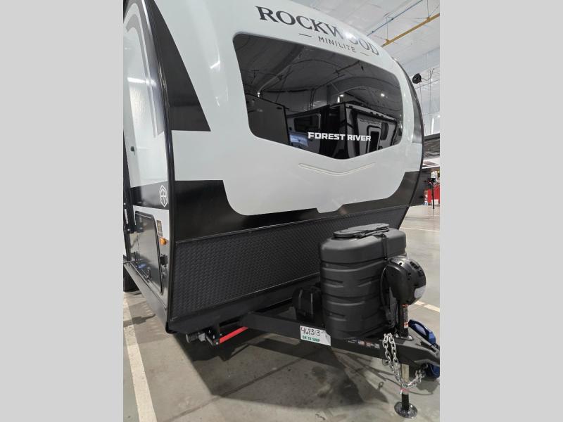Each Rockwood Mini Lite travel trailer by Forest River is constructed with a fully laminated one-piece walkable roof, sleek frameless windows, and a six-sided full aluminum frame for strength and durability. The 12V thermostatically controlled heated tanks, plus radiant foil in the underbelly will allow you to camp well into the colder months, and the 200W roof solar panel will be perfect for a little off-gridding. Each model includes solid surface kitchen countertops, hidden hinge cabinet doors, roller shades, plus many more interior features. Having an AIR 360+ omnidirectional antenna with WiFi prep on board gives you the option to get some work done if it's needed, and the power tongue jack provides hassle-free set up, so you can enjoy more time relaxing!