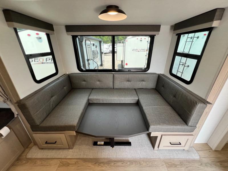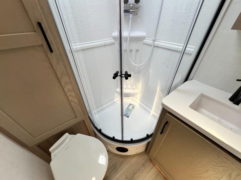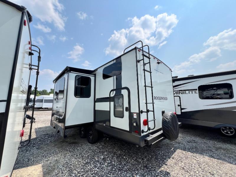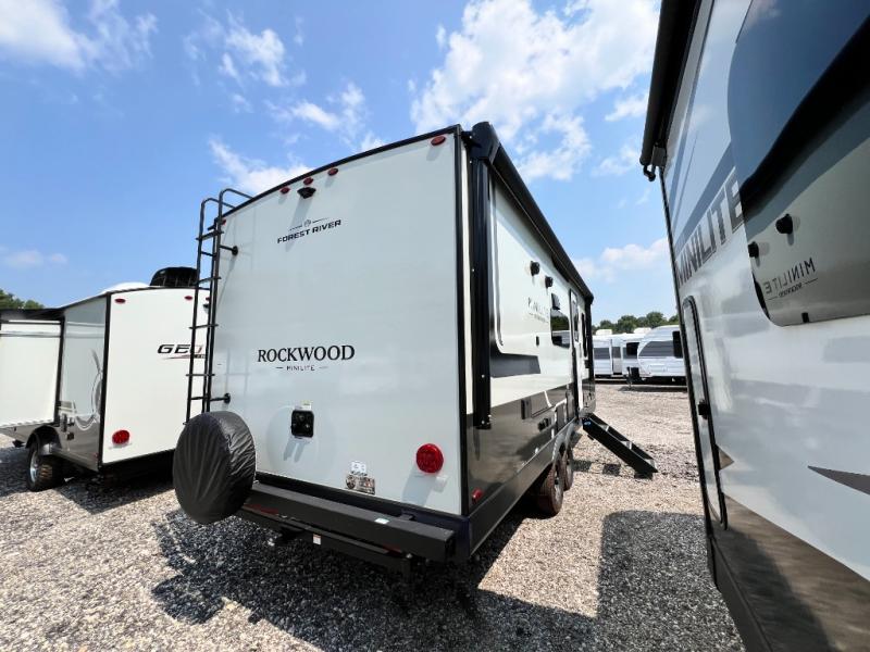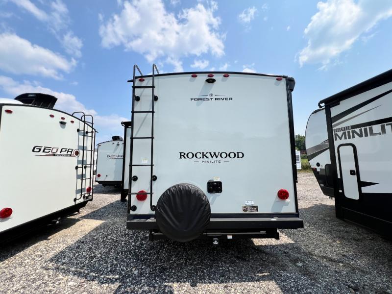 Each Rockwood Mini Lite travel trailer by Forest River is constructed with a fully laminated one-piece walkable roof, sleek frameless windows, and a six-sided full aluminum frame for strength and durability. The 12V thermostatically controlled heated tanks, plus radiant foil in the underbelly will allow you to camp well into the colder months, and the 200W roof solar panel will be perfect for a little off-gridding. Each model includes solid surface kitchen countertops, hidden hinge cabinet doors, roller shades, plus many more interior features. Having an AIR 360+ omnidirectional antenna with WiFi prep on board gives you the option to get some work done if it's needed, and the power tongue jack provides hassle-free set up, so you can enjoy more time relaxing!
