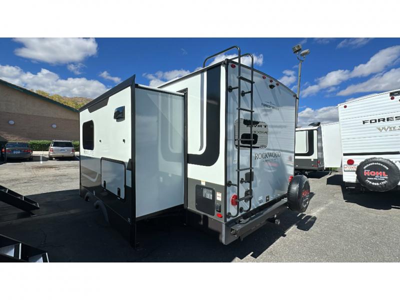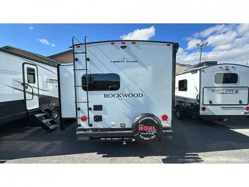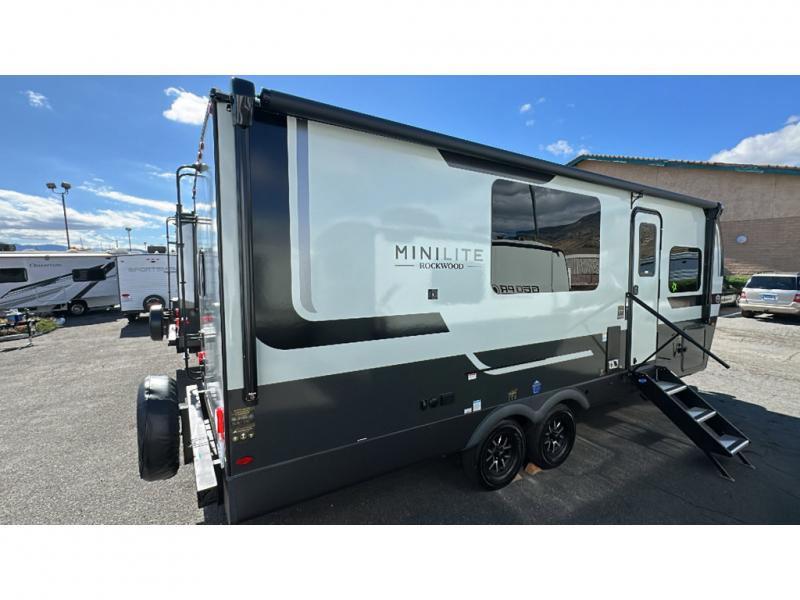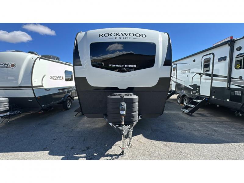 Each Rockwood Mini Lite travel trailer by Forest River is constructed with a fully laminated one-piece walkable roof, sleek frameless windows, and a six-sided full aluminum frame for strength and durability. The 12V thermostatically controlled heated tanks, plus radiant foil in the underbelly will allow you to camp well into the colder months, and the 200W roof solar panel will be perfect for a little off-gridding. Each model includes solid surface kitchen countertops, hidden hinge cabinet doors, roller shades, plus many more interior features. Having an AIR 360+ omnidirectional antenna with WiFi prep on board gives you the option to get some work done if it's needed, and the power tongue jack provides hassle-free set up, so you can enjoy more time relaxing!