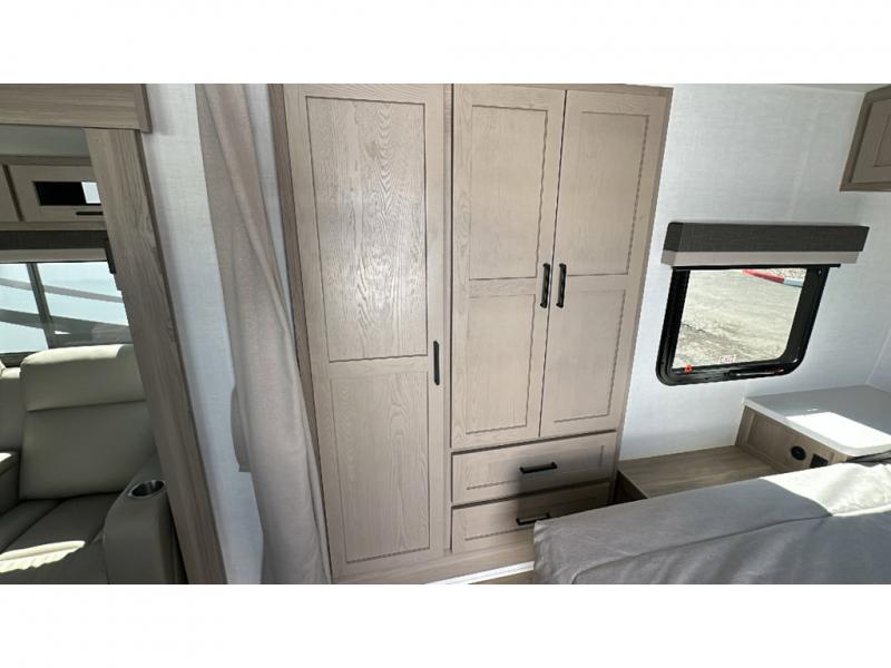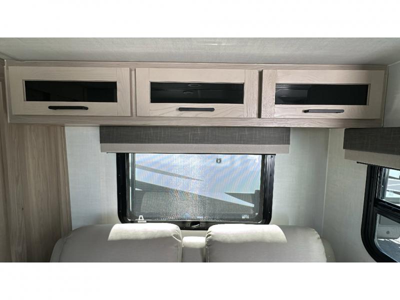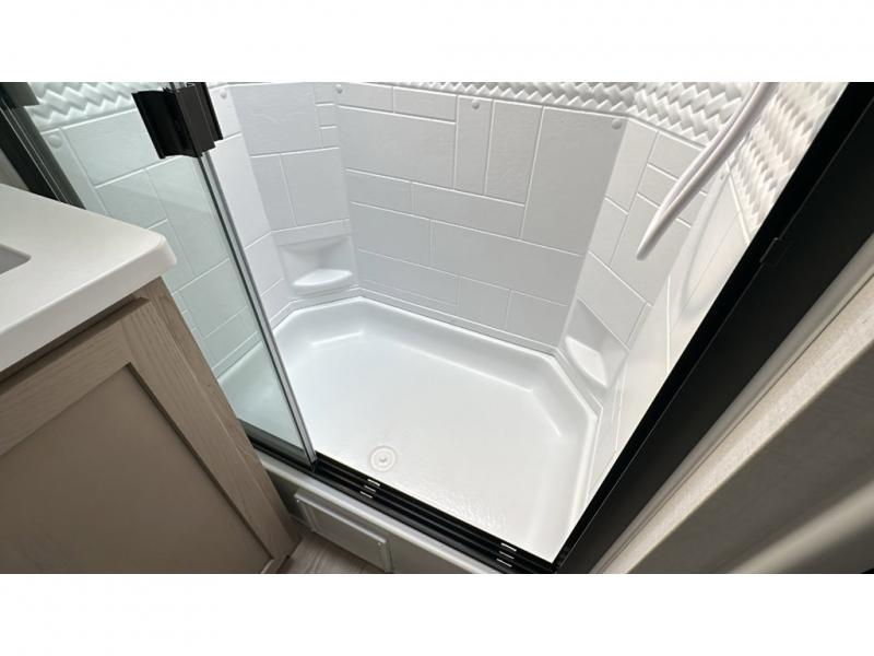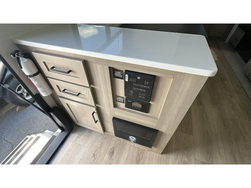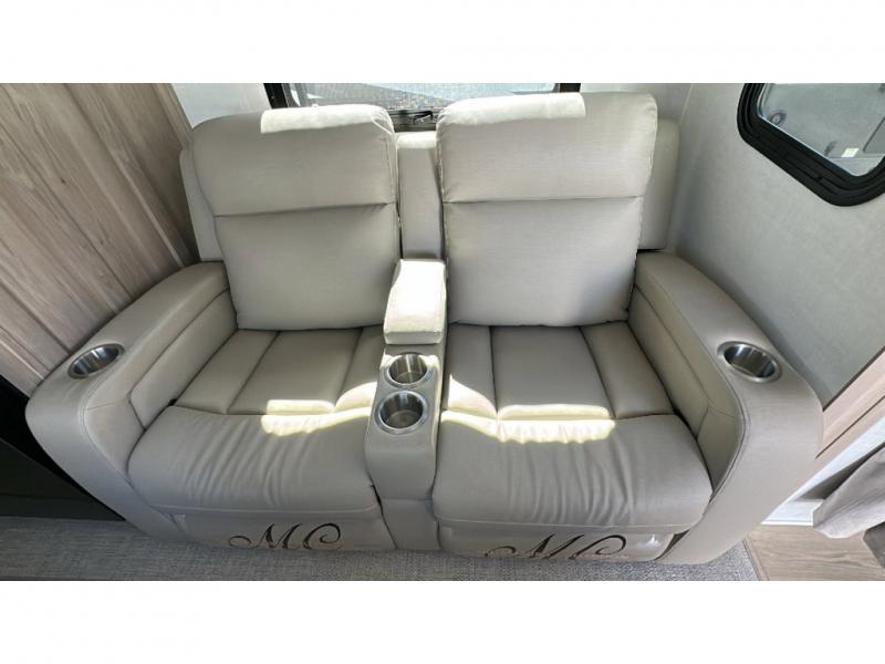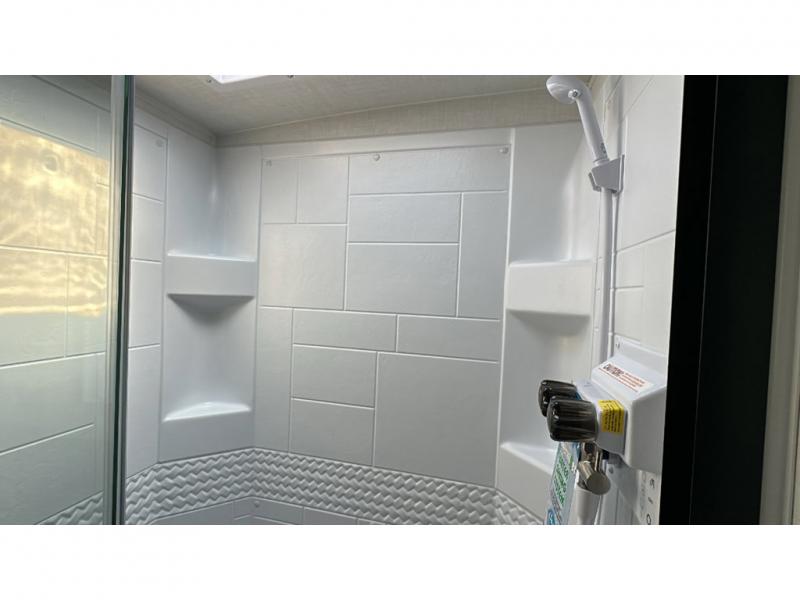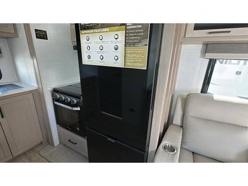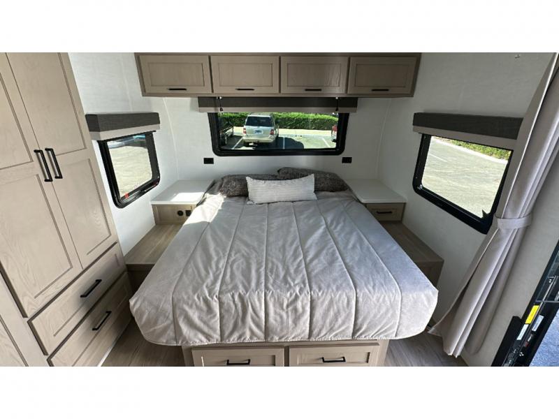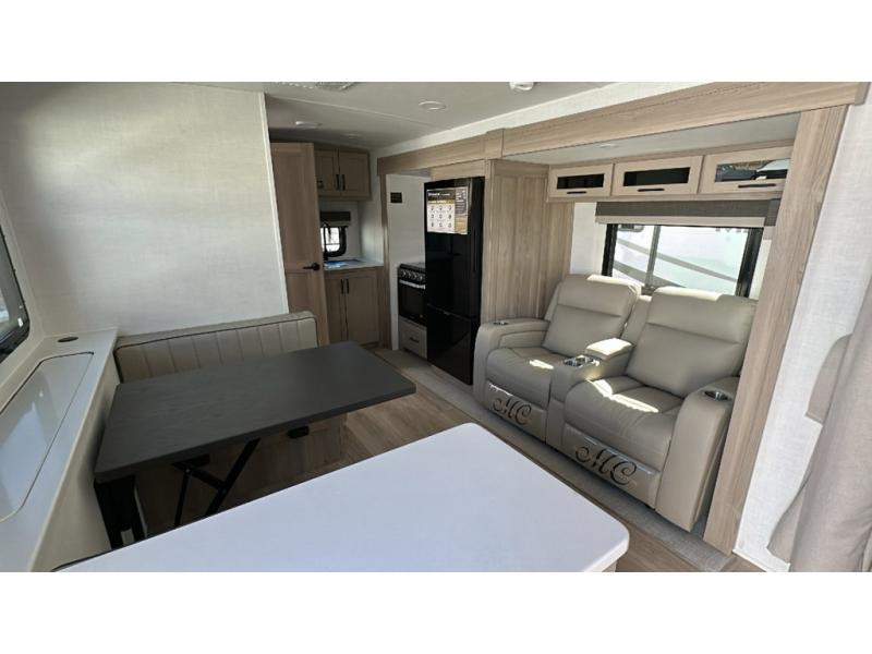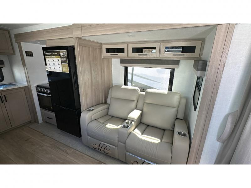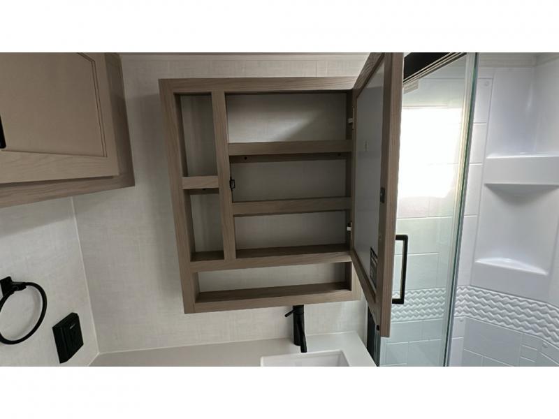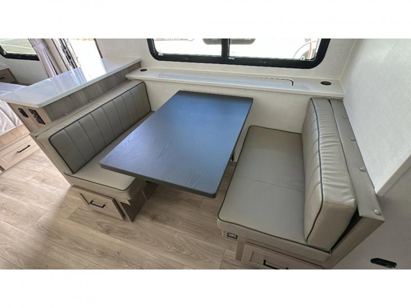 This stunning travel trailer is designed to provide the ultimate in comfort, convenience on the open road. The full bathroom is a haven for relaxation and refreshment, while the kitchen is equipped with a microwave, overhead cabinets, a three-burner cooktop, and a 12V refrigerator, making meal prep and dining the easiest task. The kitchen pantry provides ample storage for your favorite ingredients. Further, the booth dinette is a cozy spot for meals or socializing, and the theater seating is perfect for relaxing and enjoying your favorite shows or movies on the 12V Smart TV. Plus, the front bedroom is a serene retreat, featuring a spacious queen bed and convenient wardrobe, providing the perfect spot to rest and recharge after a day of adventure.