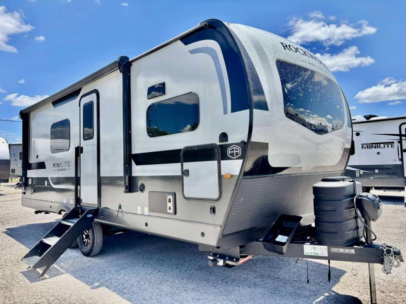 Each Rockwood Mini Lite travel trailer by Forest River is constructed with a fully laminated one-piece walkable roof, sleek frameless windows, and a six-sided full aluminum frame for strength and durability. The 12V thermostatically controlled heated tanks, plus radiant foil in the underbelly will allow you to camp well into the colder months, and the 200W roof solar panel will be perfect for a little off-gridding. Each model includes solid surface kitchen countertops, hidden hinge cabinet doors, roller shades, plus many more interior features. Having an AIR 360+ omnidirectional antenna with WiFi prep on board gives you the option to get some work done if it's needed, and the power tongue jack provides hassle-free set up, so you can enjoy more time relaxing!