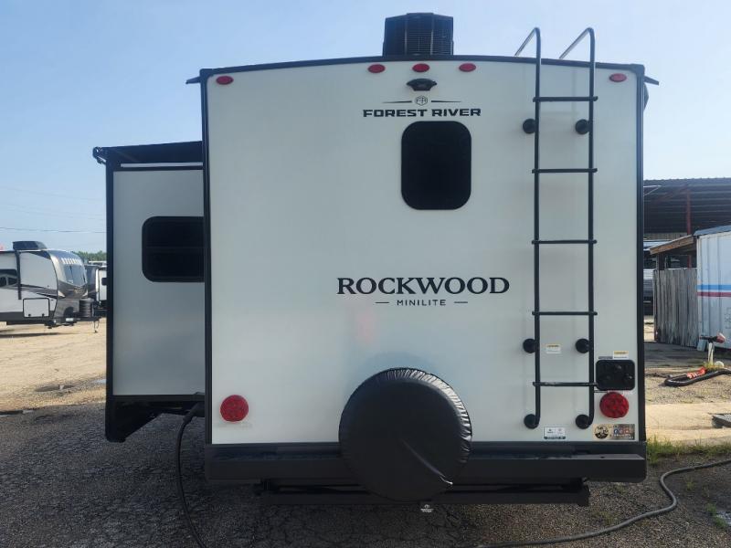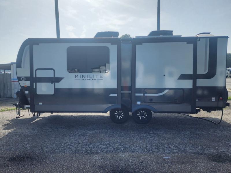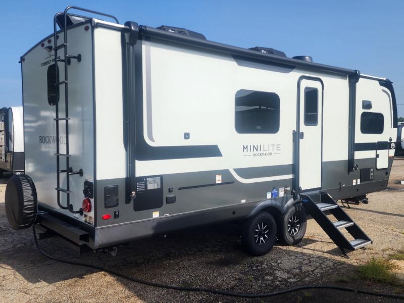 Each Rockwood Mini Lite travel trailer by Forest River is constructed with a fully laminated one-piece walkable roof, sleek frameless windows, and a six-sided full aluminum frame for strength and durability. The 12V thermostatically controlled heated tanks, plus radiant foil in the underbelly will allow you to camp well into the colder months, and the 200W roof solar panel will be perfect for a little off-gridding. Each model includes solid surface kitchen countertops, hidden hinge cabinet doors, roller shades, plus many more interior features. Having an AIR 360+ omnidirectional antenna with WiFi prep on board gives you the option to get some work done if it's needed, and the power tongue jack provides hassle-free set up, so you can enjoy more time relaxing!