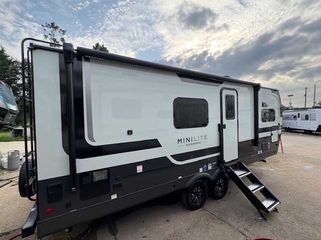 Each Rockwood Mini Lite travel trailer by Forest River is constructed with a fully laminated one-piece walkable roof, sleek frameless windows, and a six-sided full aluminum frame for strength and durability. The 12V thermostatically controlled heated tanks, plus radiant foil in the underbelly will allow you to camp well into the colder months, and the 200W roof solar panel will be perfect for a little off-gridding. Each model includes solid surface kitchen countertops, hidden hinge cabinet doors, roller shades, plus many more interior features. Having an AIR 360+ omnidirectional antenna with WiFi prep on board gives you the option to get some work done if it's needed, and the power tongue jack provides hassle-free set up, so you can enjoy more time relaxing!