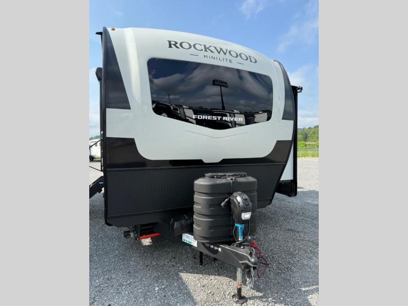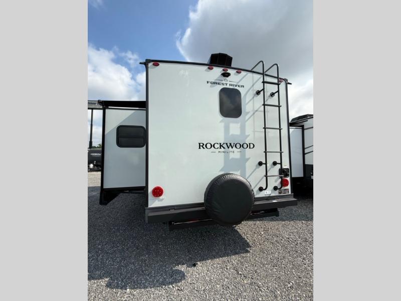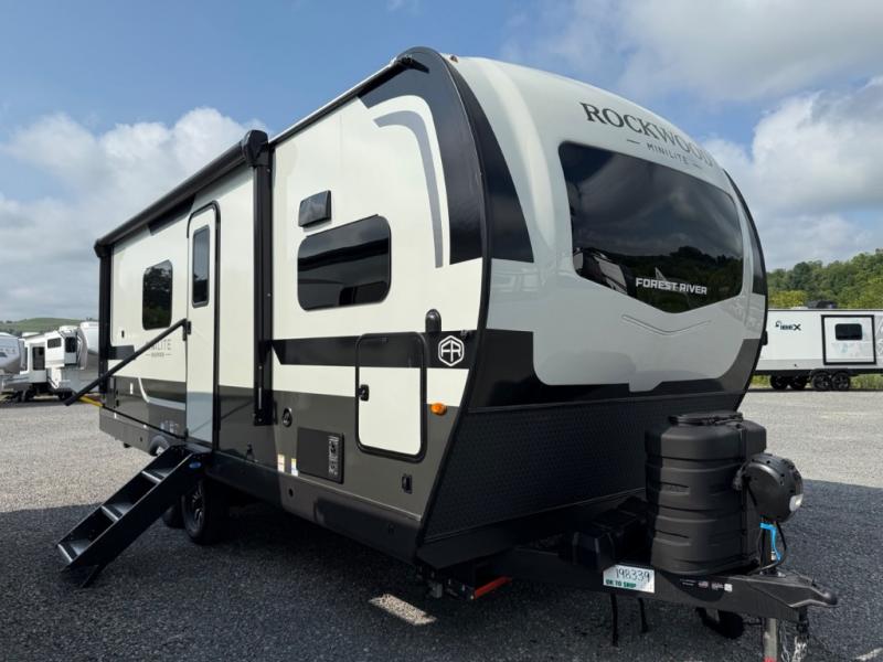 Each Rockwood Mini Lite travel trailer by Forest River is constructed with a fully laminated one-piece walkable roof, sleek frameless windows, and a six-sided full aluminum frame for strength and durability. The 12V thermostatically controlled heated tanks, plus radiant foil in the underbelly will allow you to camp well into the colder months, and the 200W roof solar panel will be perfect for a little off-gridding. Each model includes solid surface kitchen countertops, hidden hinge cabinet doors, roller shades, plus many more interior features. Having an AIR 360+ omnidirectional antenna with WiFi prep on board gives you the option to get some work done if it's needed, and the power tongue jack provides hassle-free set up, so you can enjoy more time relaxing!