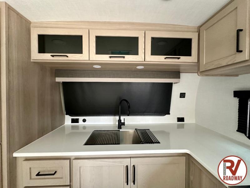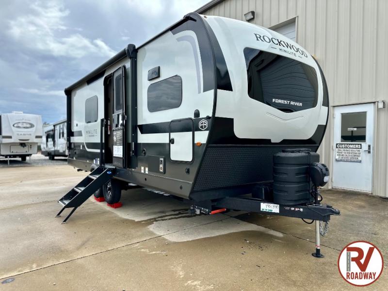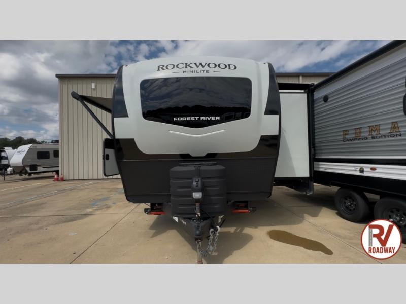 Each Rockwood Mini Lite travel trailer by Forest River is constructed with a fully laminated one-piece walkable roof, sleek frameless windows, and a six-sided full aluminum frame for strength and durability. The 12V thermostatically controlled heated tanks, plus radiant foil in the underbelly will allow you to camp well into the colder months, and the 200W roof solar panel will be perfect for a little off-gridding. Each model includes solid surface kitchen countertops, hidden hinge cabinet doors, roller shades, plus many more interior features. Having an AIR 360+ omnidirectional antenna with WiFi prep on board gives you the option to get some work done if it's needed, and the power tongue jack provides hassle-free set up, so you can enjoy more time relaxing!