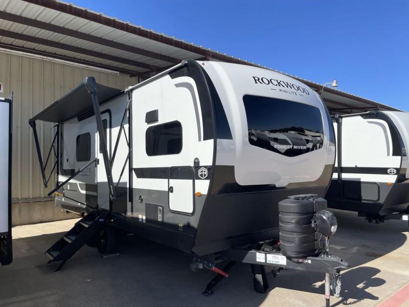 Each Rockwood Mini Lite travel trailer by Forest River is constructed with a fully laminated one-piece walkable roof, sleek frameless windows, and a six-sided full aluminum frame for strength and durability. The 12V thermostatically controlled heated tanks, plus radiant foil in the underbelly will allow you to camp well into the colder months, and the 200W roof solar panel will be perfect for a little off-gridding. Each model includes solid surface kitchen countertops, hidden hinge cabinet doors, roller shades, plus many more interior features. Having an AIR 360+ omnidirectional antenna with WiFi prep on board gives you the option to get some work done if it's needed, and the power tongue jack provides hassle-free set up, so you can enjoy more time relaxing!
