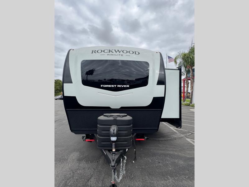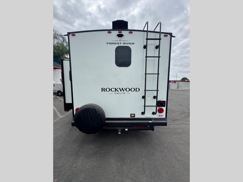 Each Rockwood Mini Lite travel trailer by Forest River is constructed with a fully laminated one-piece walkable roof, sleek frameless windows, and a six-sided full aluminum frame for strength and durability. The 12V thermostatically controlled heated tanks, plus radiant foil in the underbelly will allow you to camp well into the colder months, and the 200W roof solar panel will be perfect for a little off-gridding. Each model includes solid surface kitchen countertops, hidden hinge cabinet doors, roller shades, plus many more interior features. Having an AIR 360+ omnidirectional antenna with WiFi prep on board gives you the option to get some work done if it's needed, and the power tongue jack provides hassle-free set up, so you can enjoy more time relaxing!