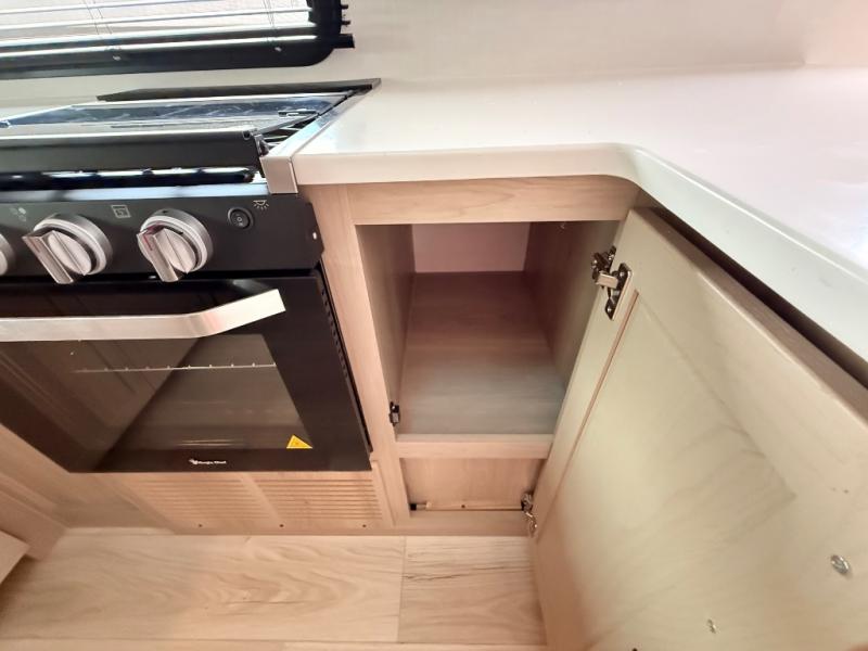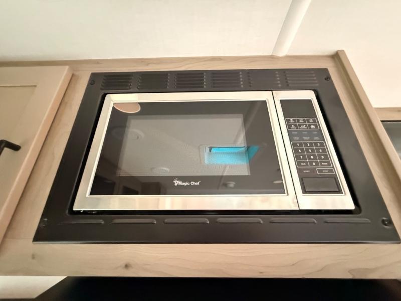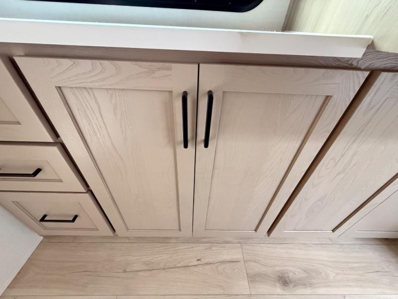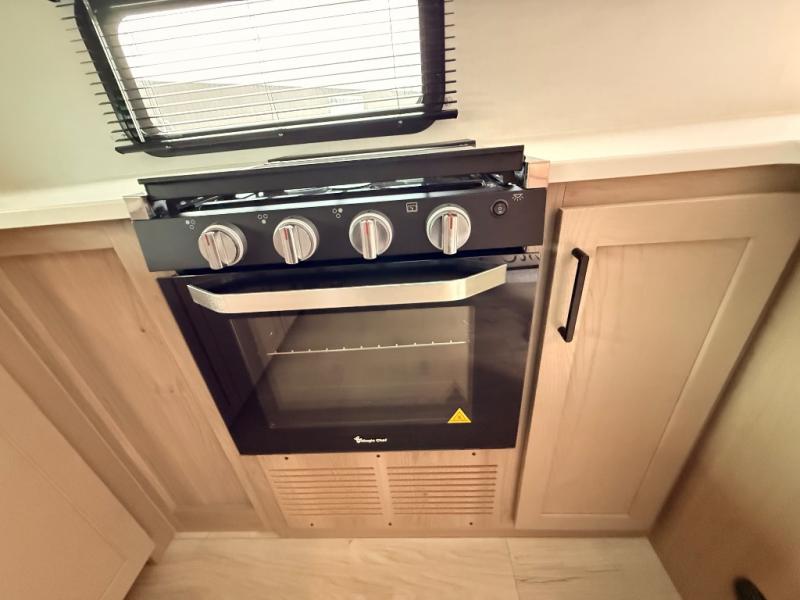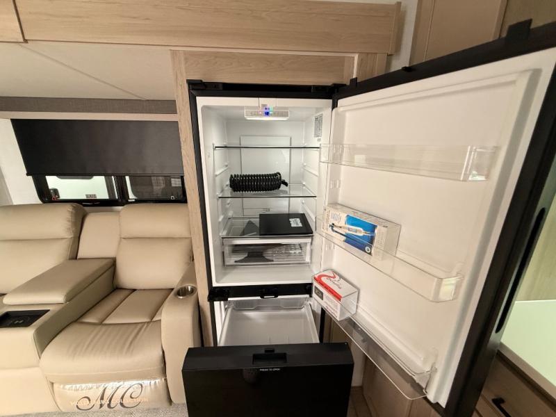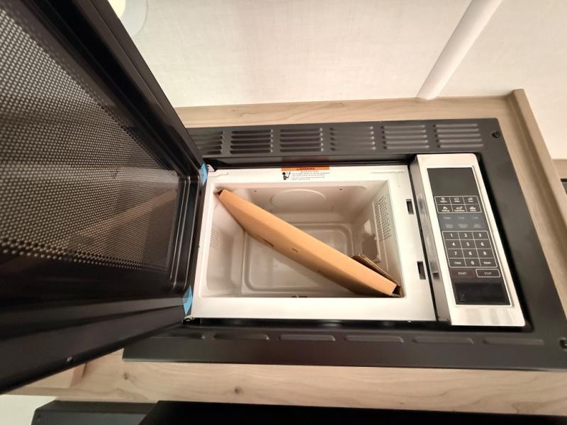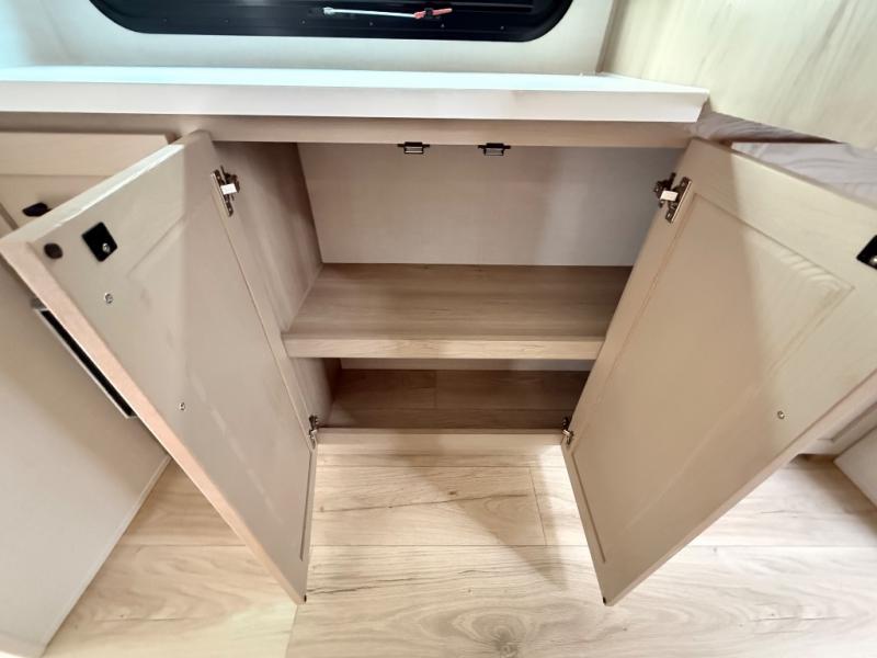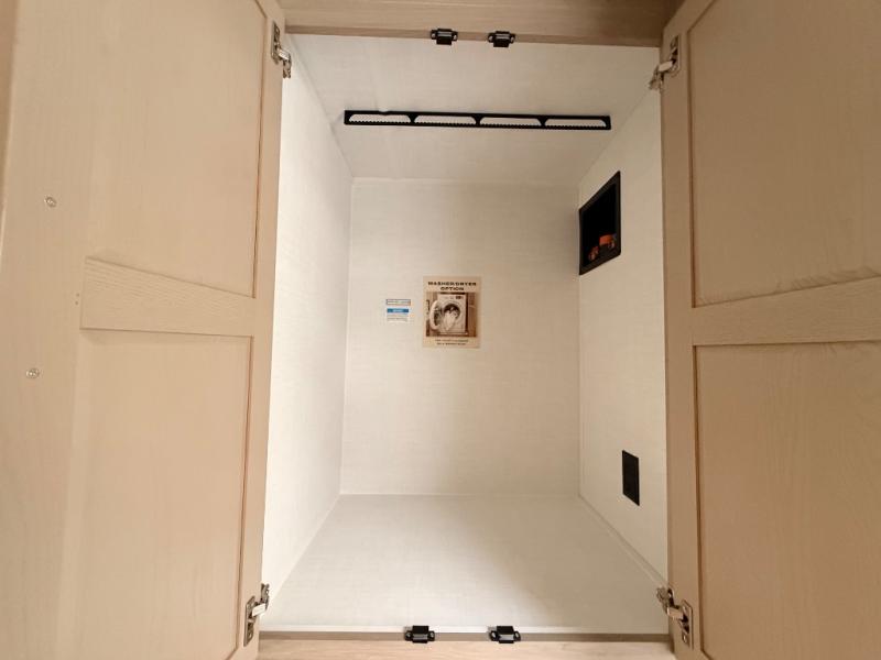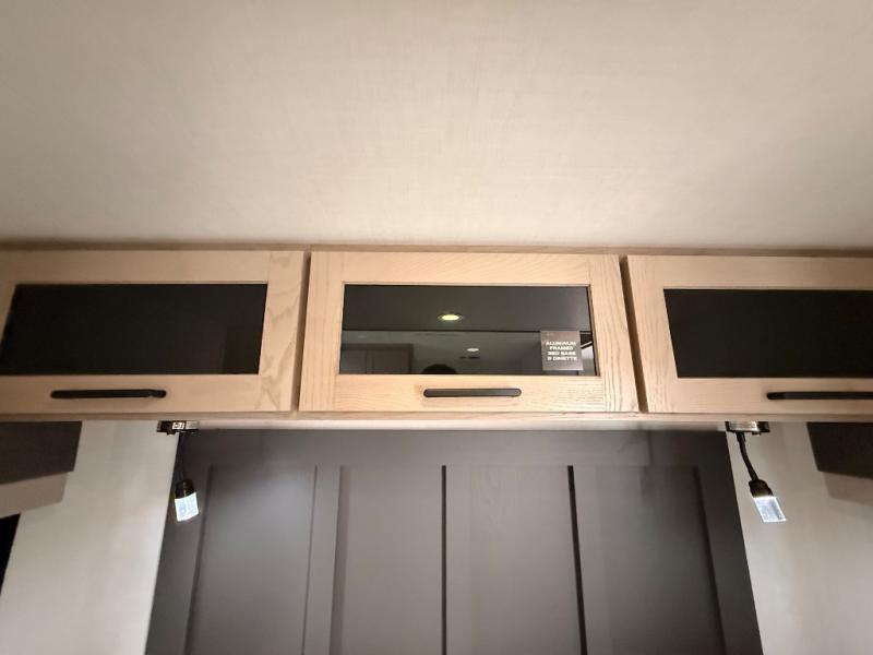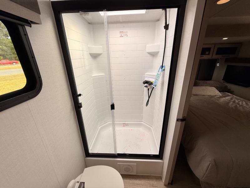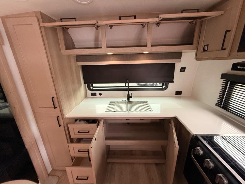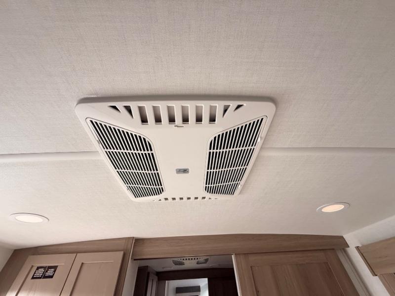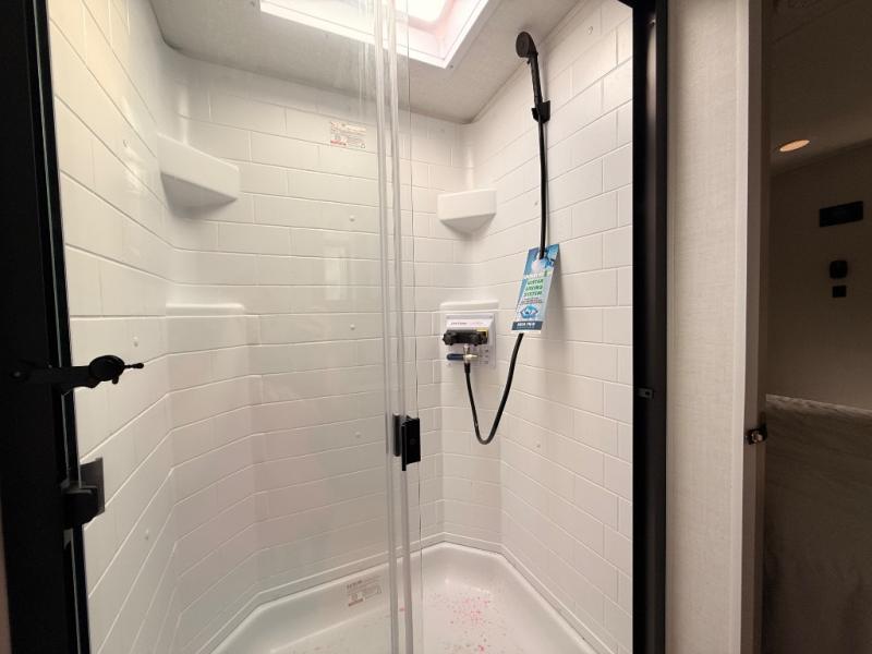 This travel trailer is the best option for you and your partner! The lavish full rear bathroom features a spacious layout and a convenient linen closet, perfect for relaxation and refreshment. The elegant bedroom boasts a plush queen bed, ample wardrobe space, and stylish dresser, creating a serene retreat. The spacious living room and kitchen combined area is the heart of the trailer, featuring plush theater seating for cozy movie nights, a generous closet for storing essentials, and a 12V Smart TV for entertainment on the go. Plus, the expansive countertop with chairs provides a perfect spot for gourmet meals or socializing, while the premium three-burner cooktop, well-stocked kitchen pantry, and high-performance microwave make meal prep and cooking a true delight.