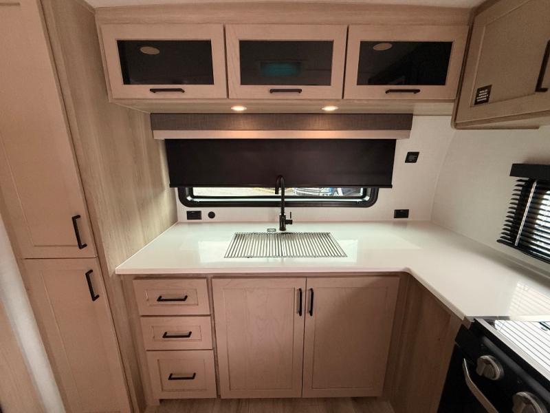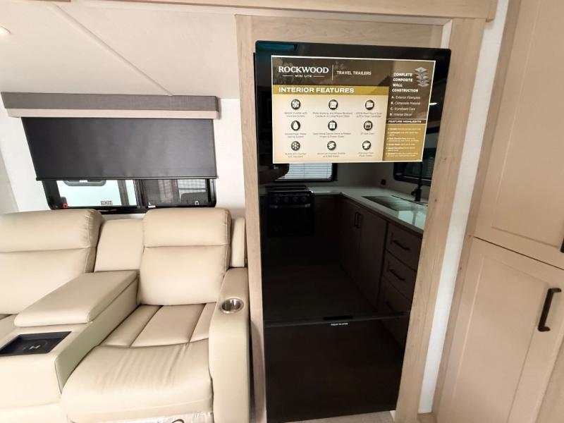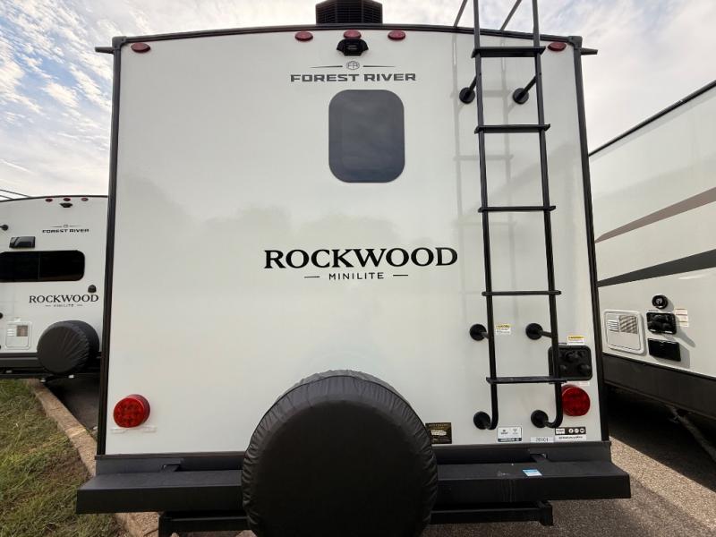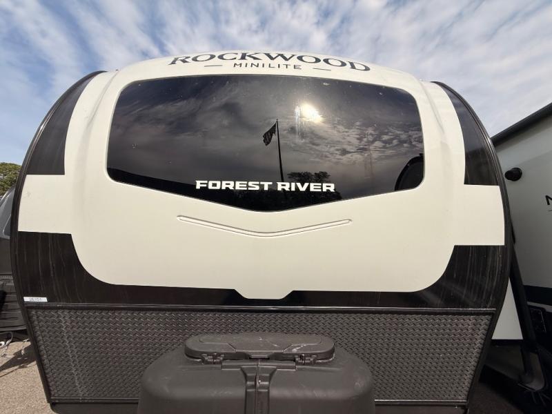 Each Rockwood Mini Lite travel trailer by Forest River is constructed with a fully laminated one-piece walkable roof, sleek frameless windows, and a six-sided full aluminum frame for strength and durability. The 12V thermostatically controlled heated tanks, plus radiant foil in the underbelly will allow you to camp well into the colder months, and the 200W roof solar panel will be perfect for a little off-gridding. Each model includes solid surface kitchen countertops, hidden hinge cabinet doors, roller shades, plus many more interior features. Having an AIR 360+ omnidirectional antenna with WiFi prep on board gives you the option to get some work done if it's needed, and the power tongue jack provides hassle-free set up, so you can enjoy more time relaxing!