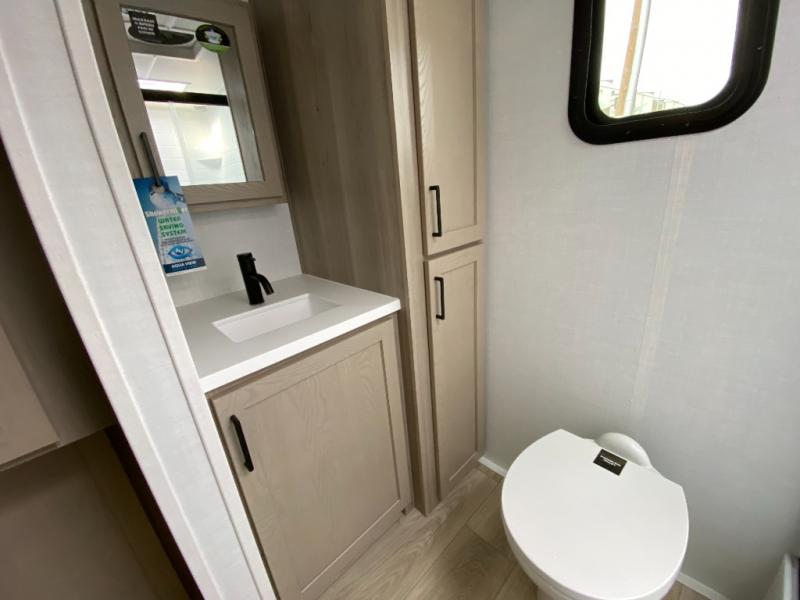 Each Rockwood Mini Lite travel trailer by Forest River is constructed with a fully laminated one-piece walkable roof, sleek frameless windows, and a six-sided full aluminum frame for strength and durability. The 12V thermostatically controlled heated tanks, plus radiant foil in the underbelly will allow you to camp well into the colder months, and the 200W roof solar panel will be perfect for a little off-gridding. Each model includes solid surface kitchen countertops, hidden hinge cabinet doors, roller shades, plus many more interior features. Having an AIR 360+ omnidirectional antenna with WiFi prep on board gives you the option to get some work done if it's needed, and the power tongue jack provides hassle-free set up, so you can enjoy more time relaxing!