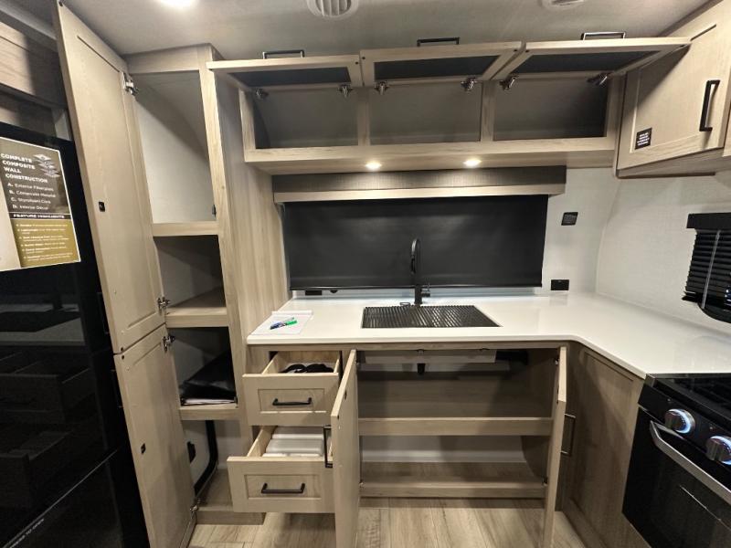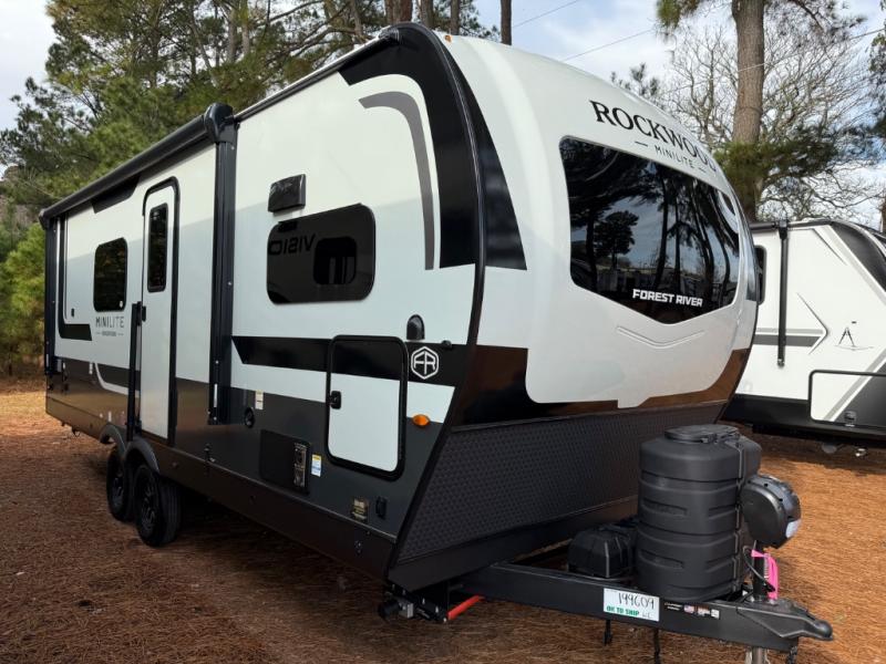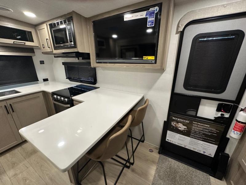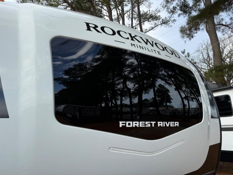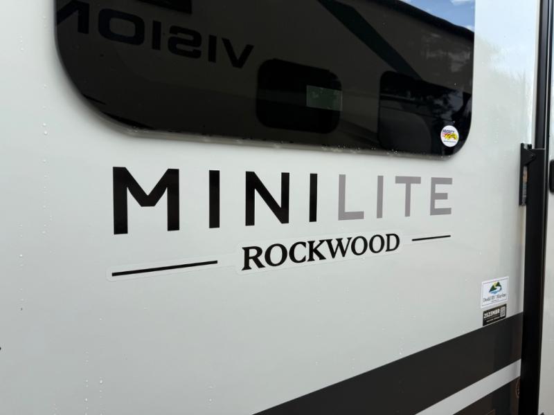 Each Rockwood Mini Lite travel trailer by Forest River is constructed with a fully laminated one-piece walkable roof, sleek frameless windows, and a six-sided full aluminum frame for strength and durability. The 12V thermostatically controlled heated tanks, plus radiant foil in the underbelly will allow you to camp well into the colder months, and the 200W roof solar panel will be perfect for a little off-gridding. Each model includes solid surface kitchen countertops, hidden hinge cabinet doors, roller shades, plus many more interior features. Having an AIR 360+ omnidirectional antenna with WiFi prep on board gives you the option to get some work done if it's needed, and the power tongue jack provides hassle-free set up, so you can enjoy more time relaxing!