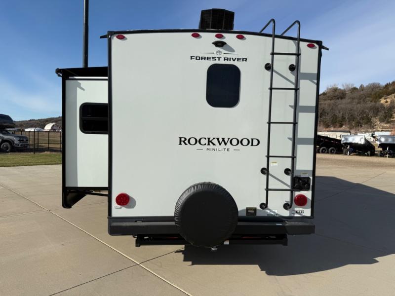 Each Rockwood Mini Lite travel trailer by Forest River is constructed with a fully laminated one-piece walkable roof, sleek frameless windows, and a six-sided full aluminum frame for strength and durability. The 12V thermostatically controlled heated tanks, plus radiant foil in the underbelly will allow you to camp well into the colder months, and the 200W roof solar panel will be perfect for a little off-gridding. Each model includes solid surface kitchen countertops, hidden hinge cabinet doors, roller shades, plus many more interior features. Having an AIR 360+ omnidirectional antenna with WiFi prep on board gives you the option to get some work done if it's needed, and the power tongue jack provides hassle-free set up, so you can enjoy more time relaxing!